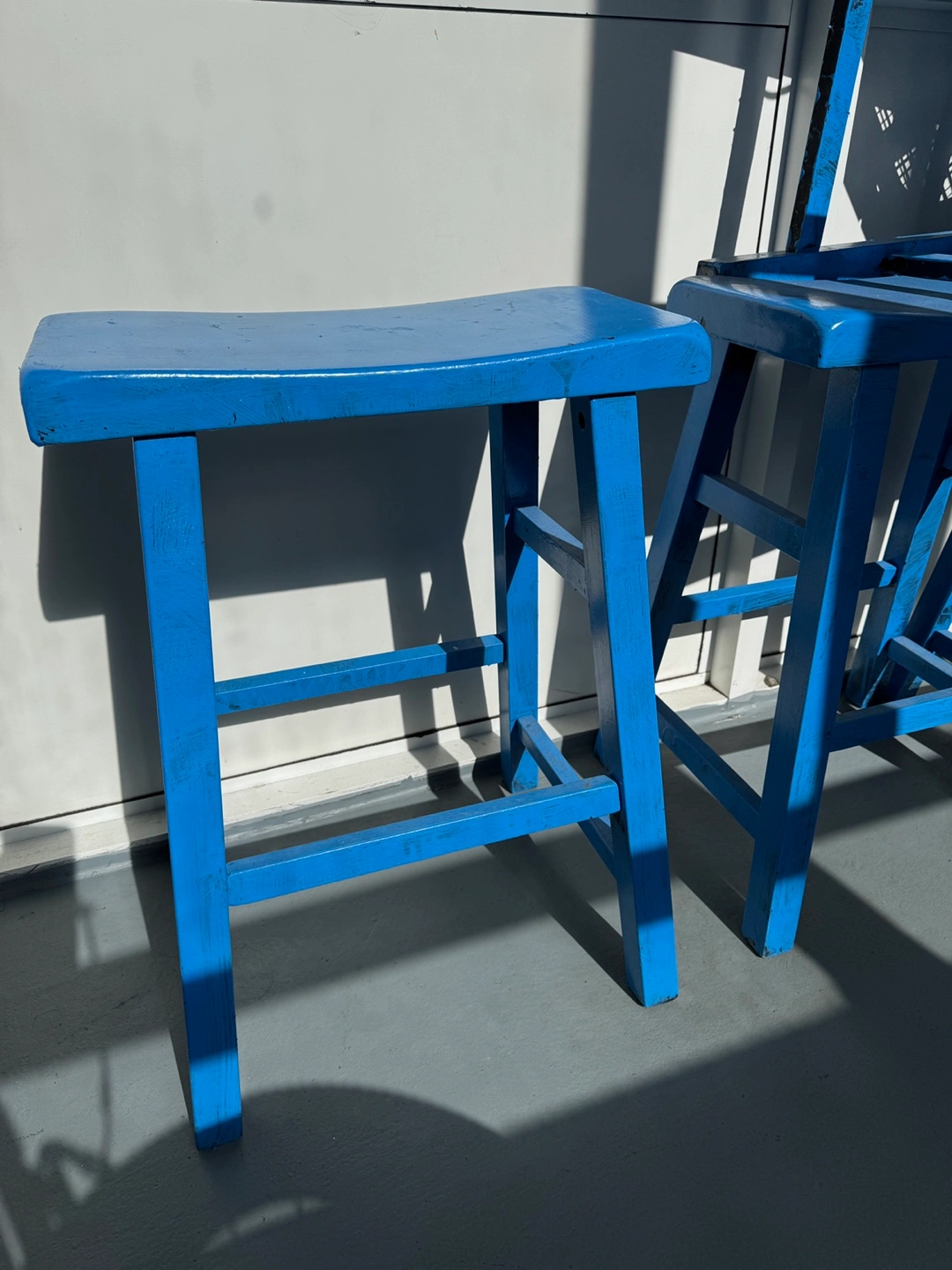 This is a set of two bar stools. They’re comfortable, perfect for kitchen islands, breakfast bars, or for terraces. Lightly used and in great condition.