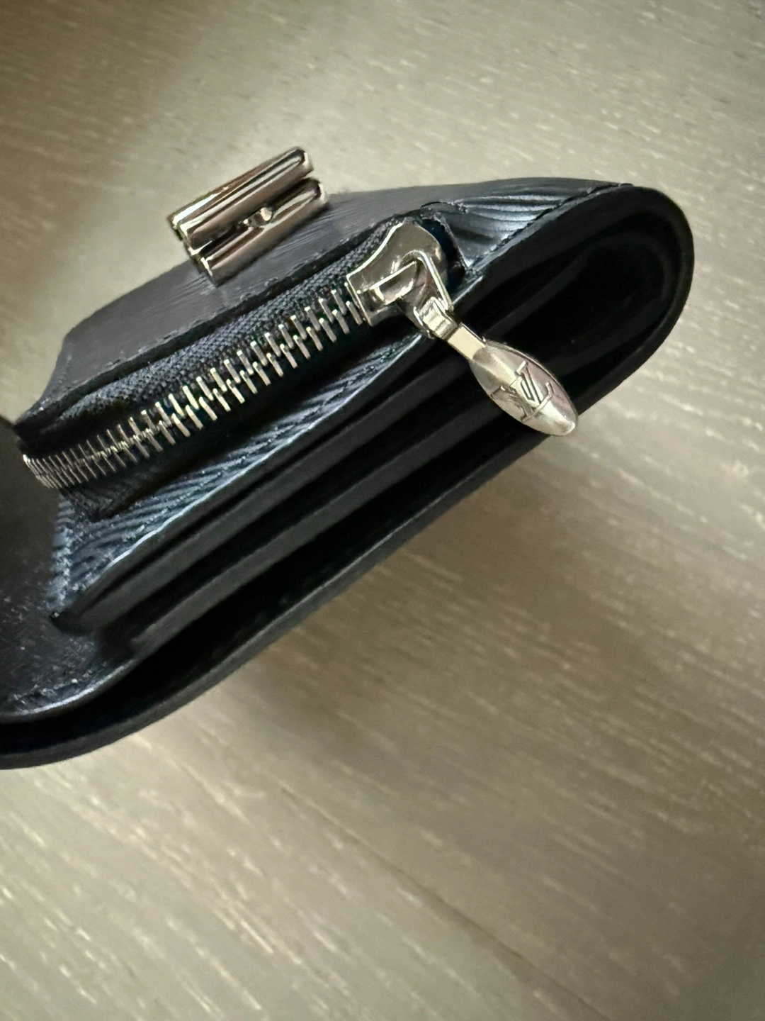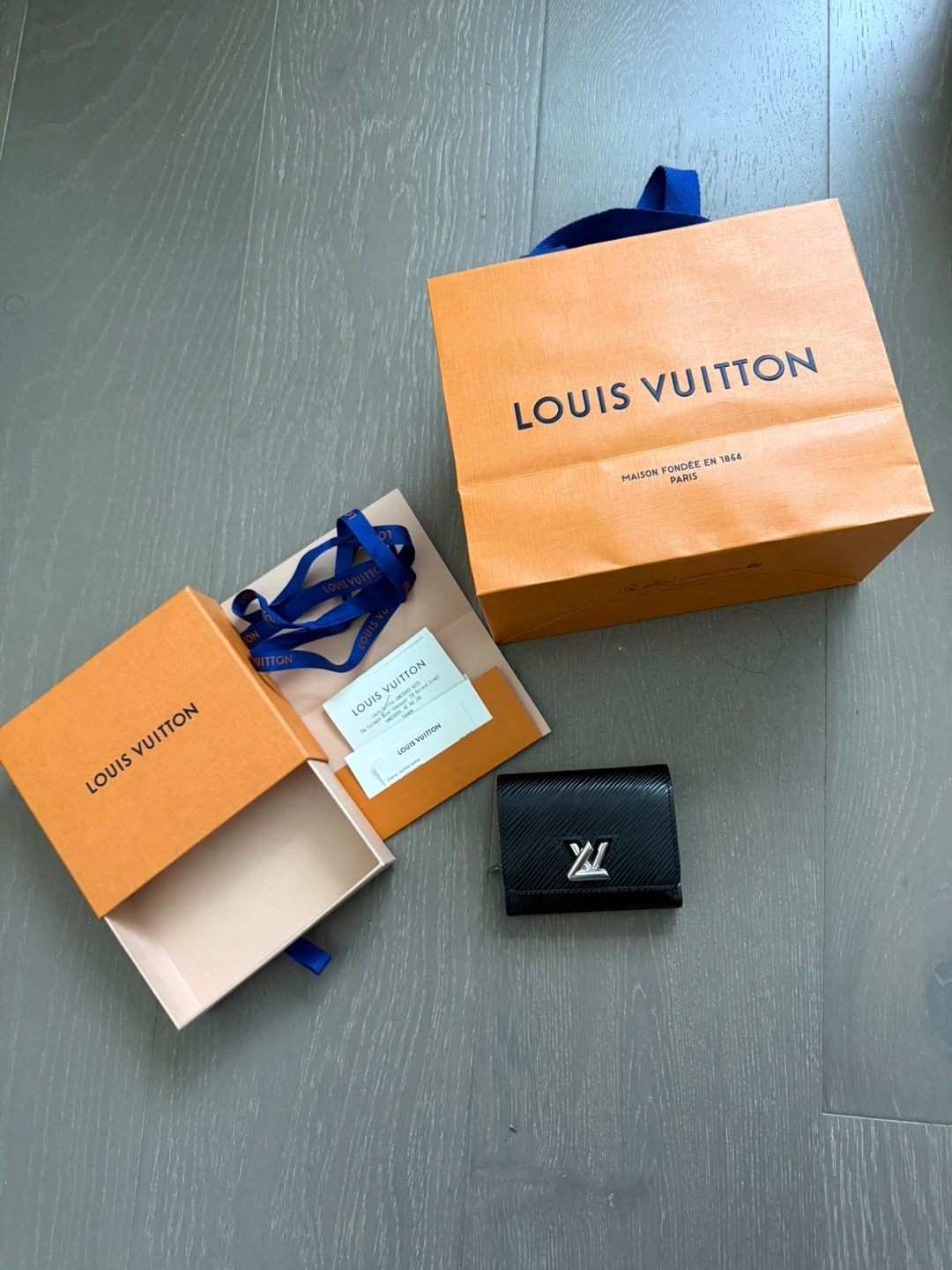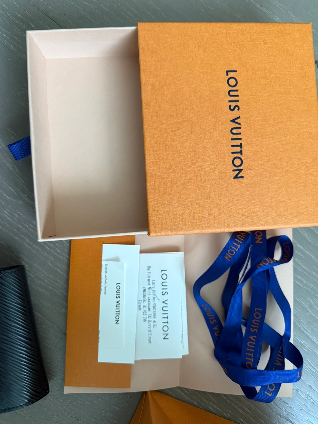 Black leather Louis Vuitton wallet. Features a zipper closure and signature LV emblem. Comes with original box, receipt and and shopping bag. I can meet you in Austin Heights, or at the Burquitlan or Lougheed Skytrain stations.