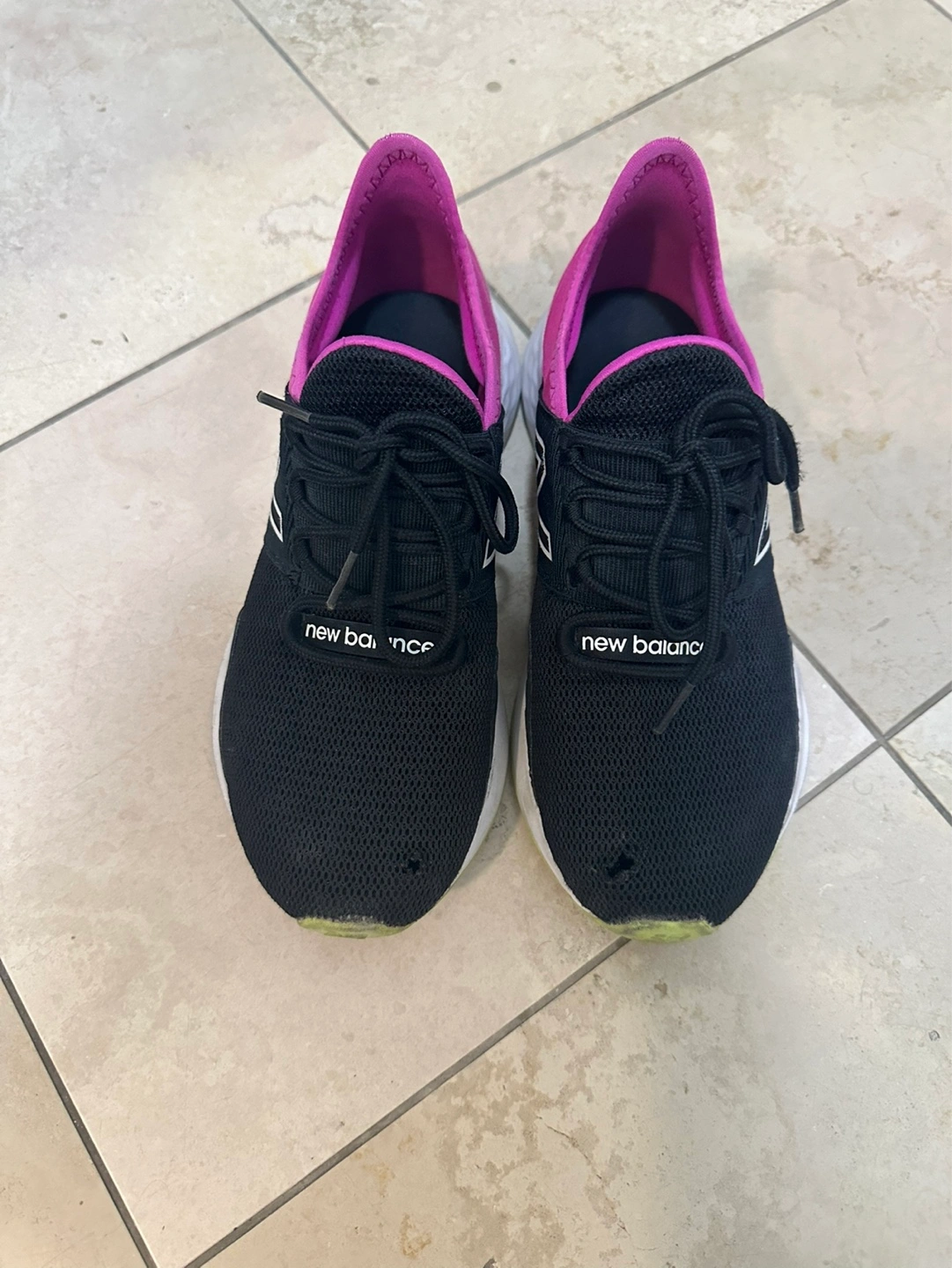 Used New Balance running shoes. Minor wear and tear. Comfortable cushioning.