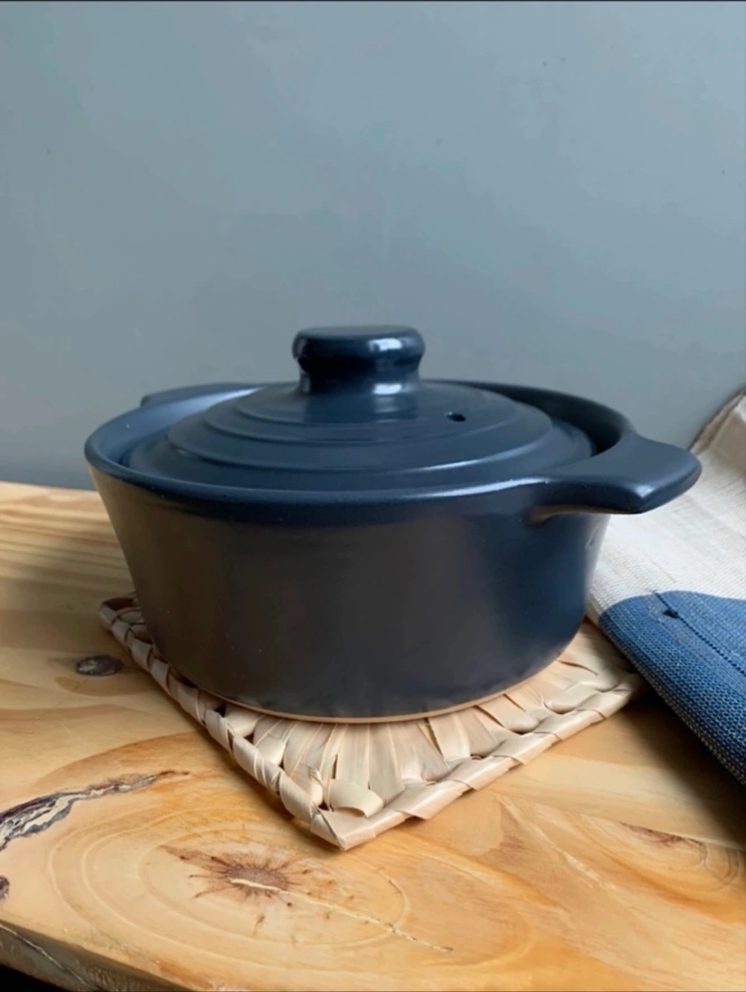 •2.9L Navy Donabe Clay pot perfect for preparing individual portions, ramen, stew, rice, soup, bibimbap or other side dishes.