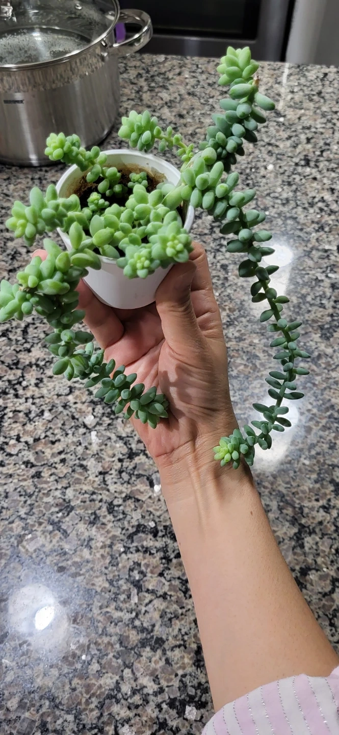 Super healthy Burro's Tail in White Ceramic Pot. Perfect for gifting idea.