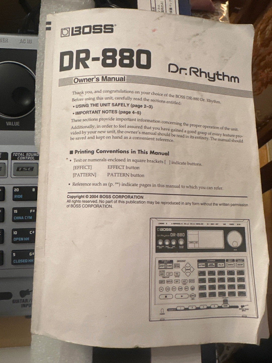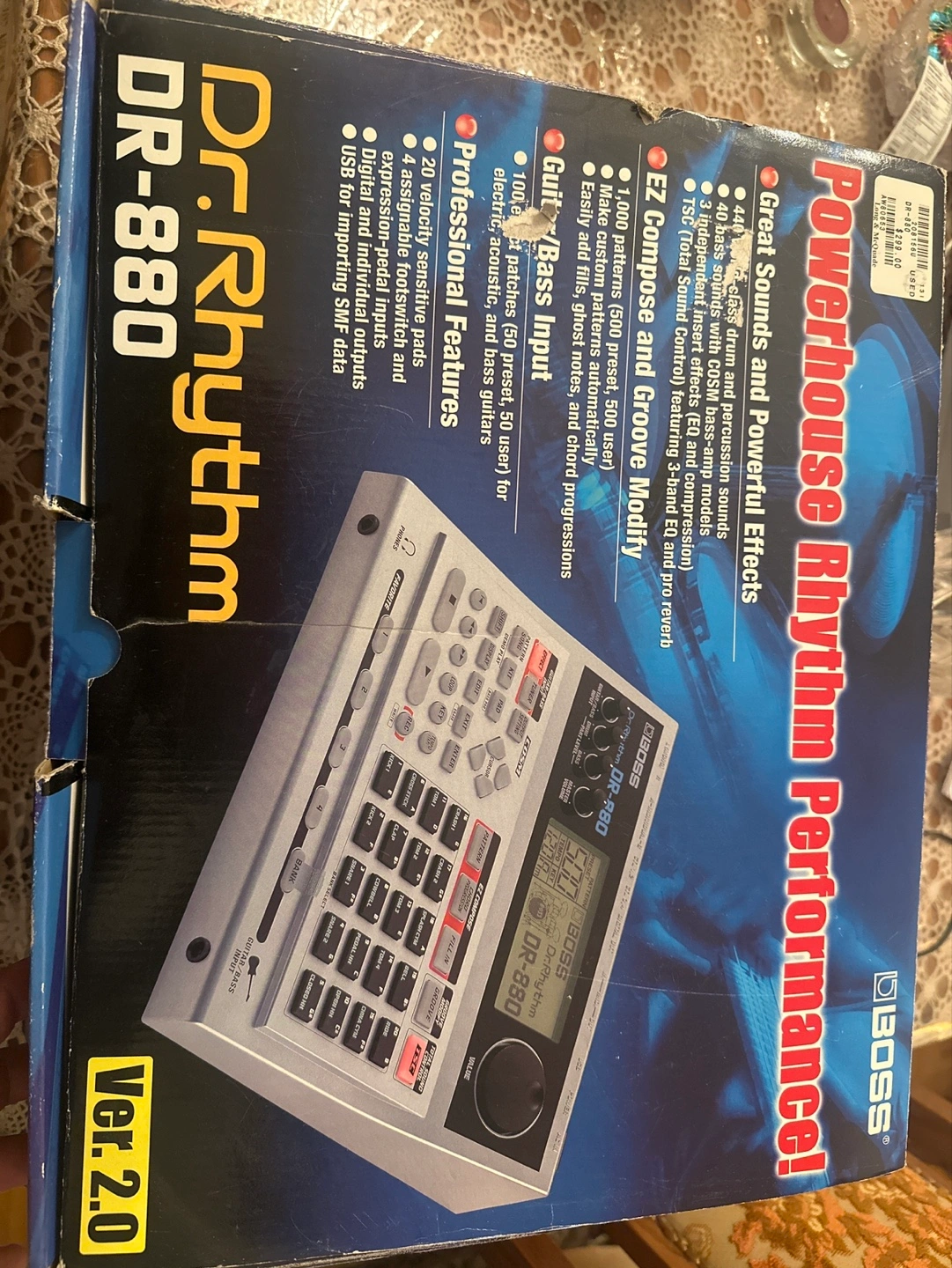 Used BOSS DR-880 digital drum machine. Includes power supply and owner's manual. Great sounds and powerful effects. 440 world-class drum and percussion sounds. EZ Compose and Groove Modify features. Many patterns and presets.