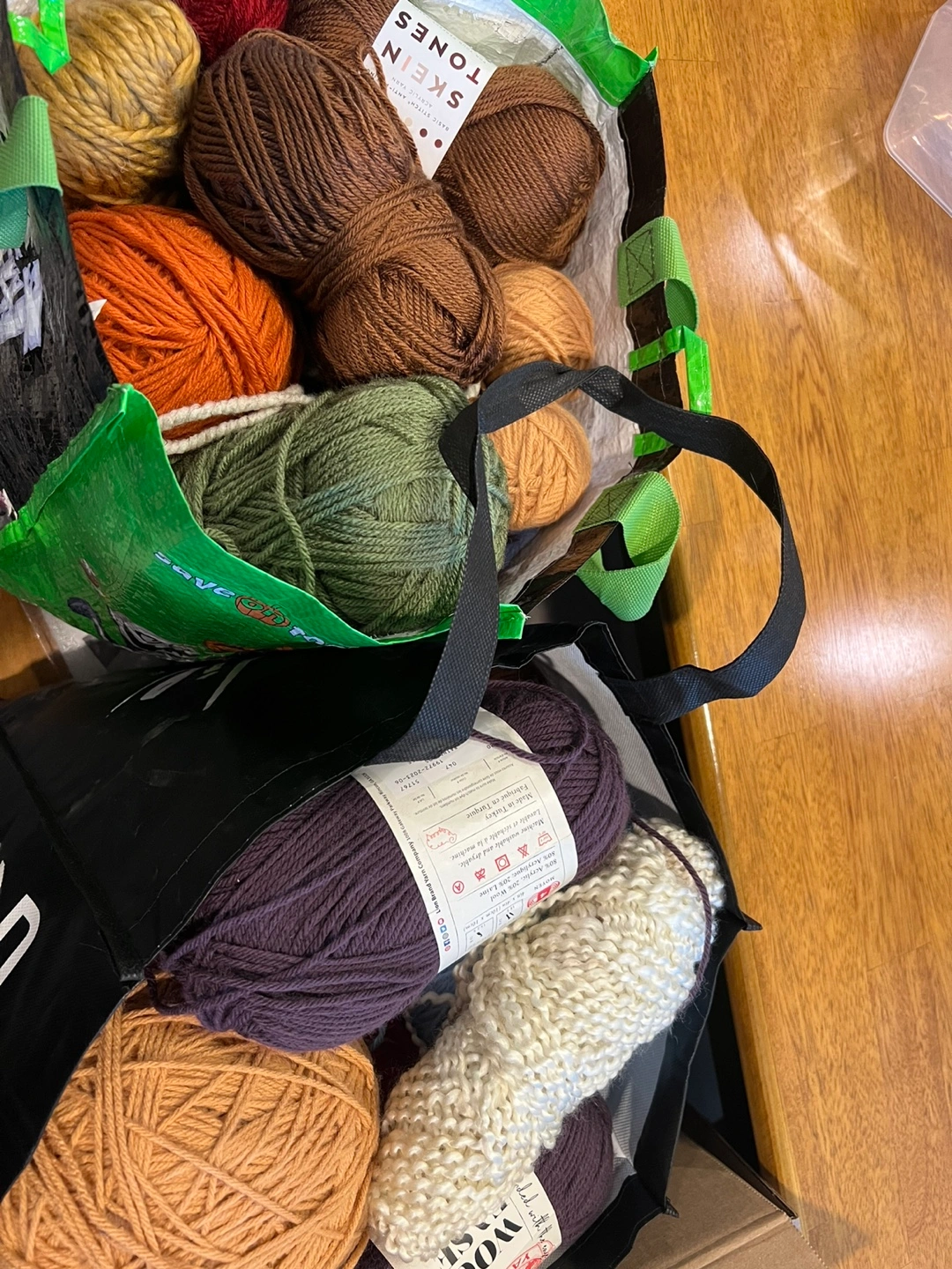 Bulk acrylic yarn. Lots of brand new skeins and some partials, and lots of different colours. A few pounds of love, some wool ease, and other brands.