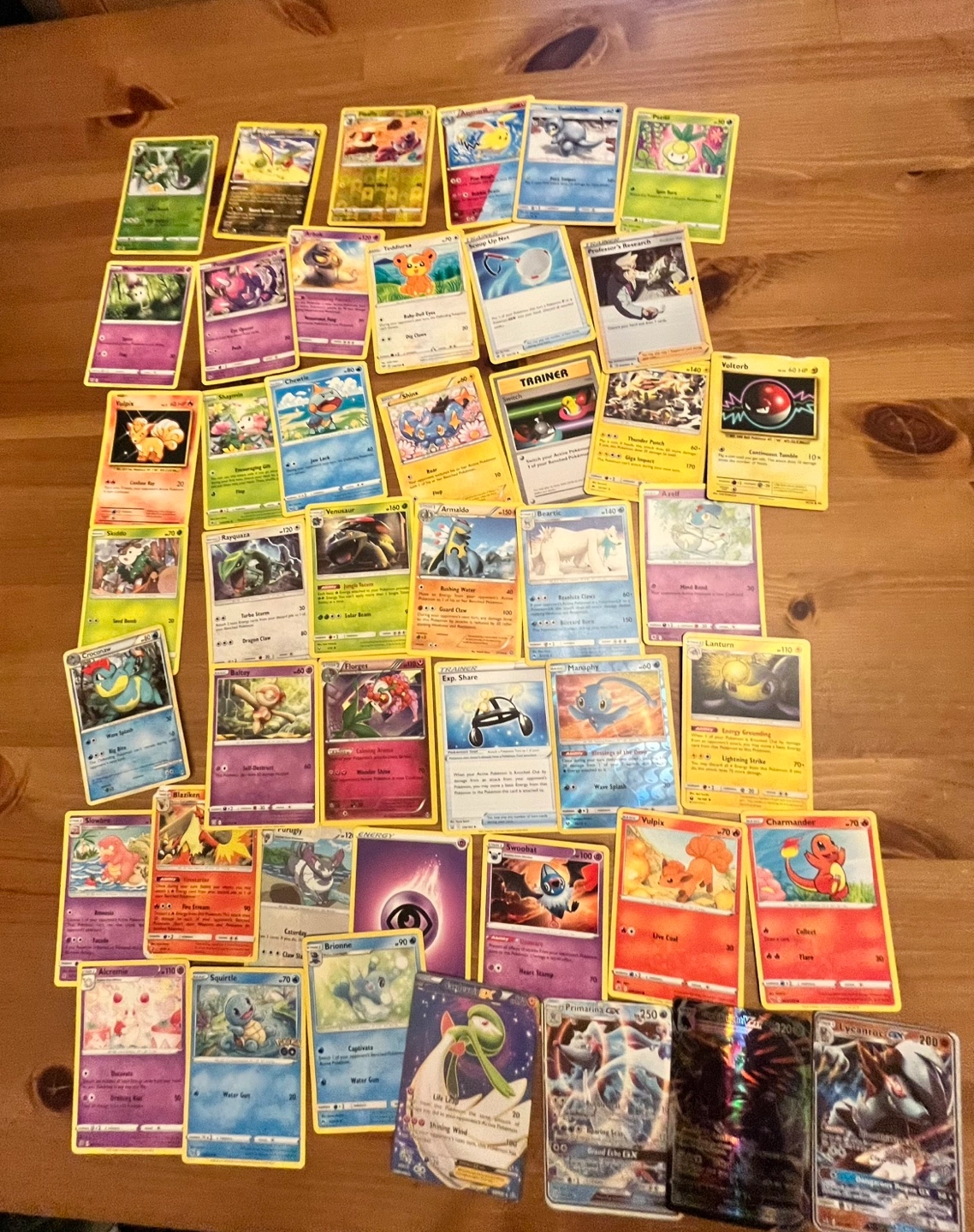Collection of Pokémon cards. Various Pokémon featured. Includes energy cards and trainer cards. Mostly from the Sun & Moon era. $6 for all