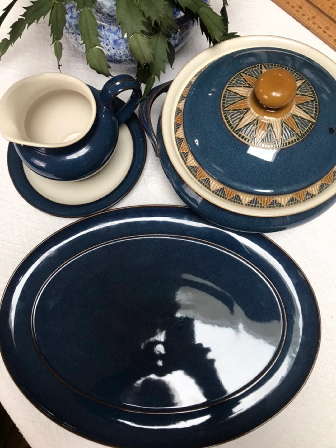 Three pieces of discontinued Boston Spa china. Gently used. Perfect condition. No chips or cracks. Original purchase receipt from Ashley’s in photos. Gravy Boat and Saucer - 30.00 Oval Platter - 30.00 Casserole Dish with Lid - 50.00
