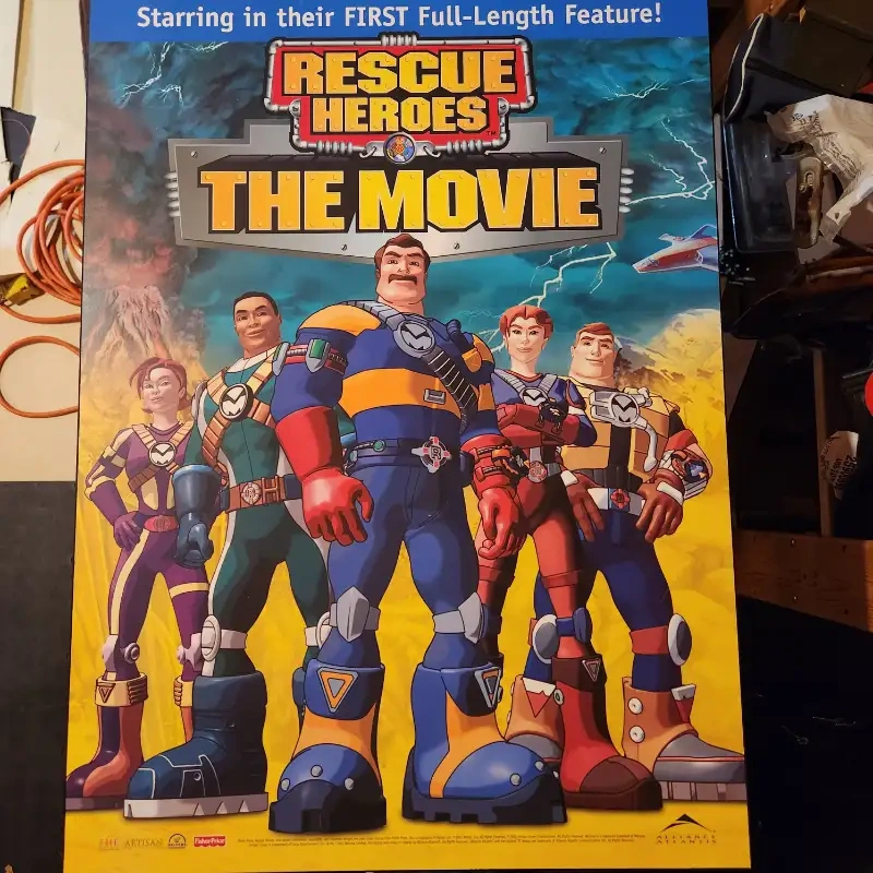 64Large poster featuring the Rescue Heroes team. Great for collectors or fans. Minor wear, otherwise in good condition. Image shows the movie's main characters.