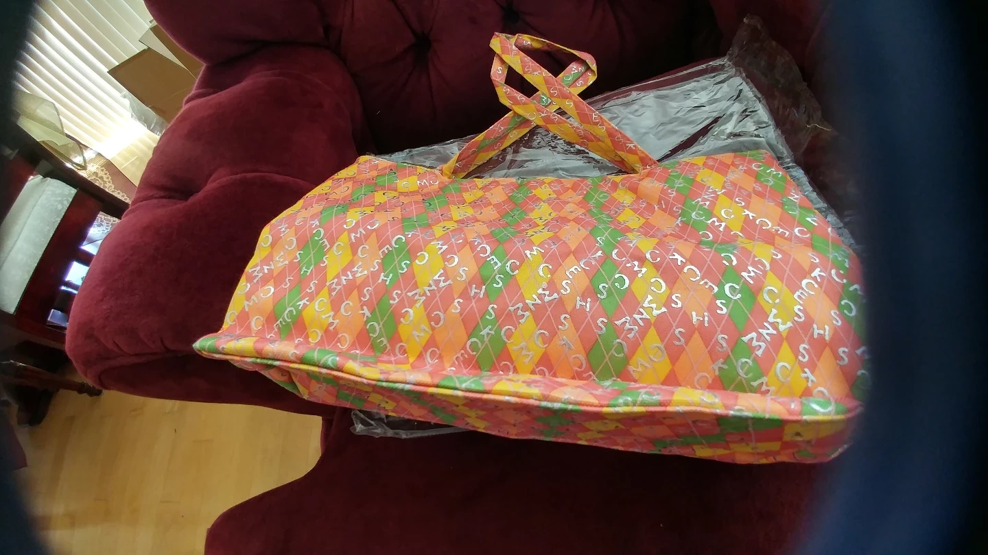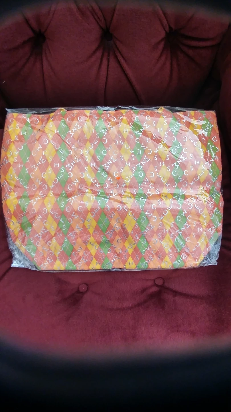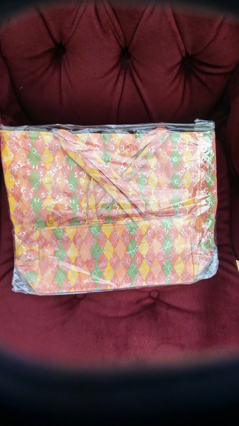 Large tote bag. Orange, green and yellow argyle pattern. New with tags.