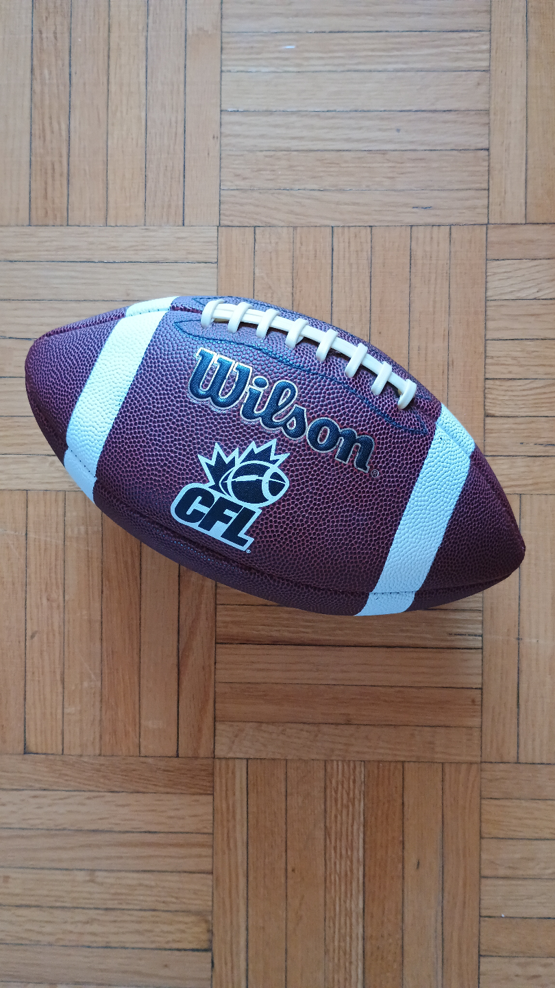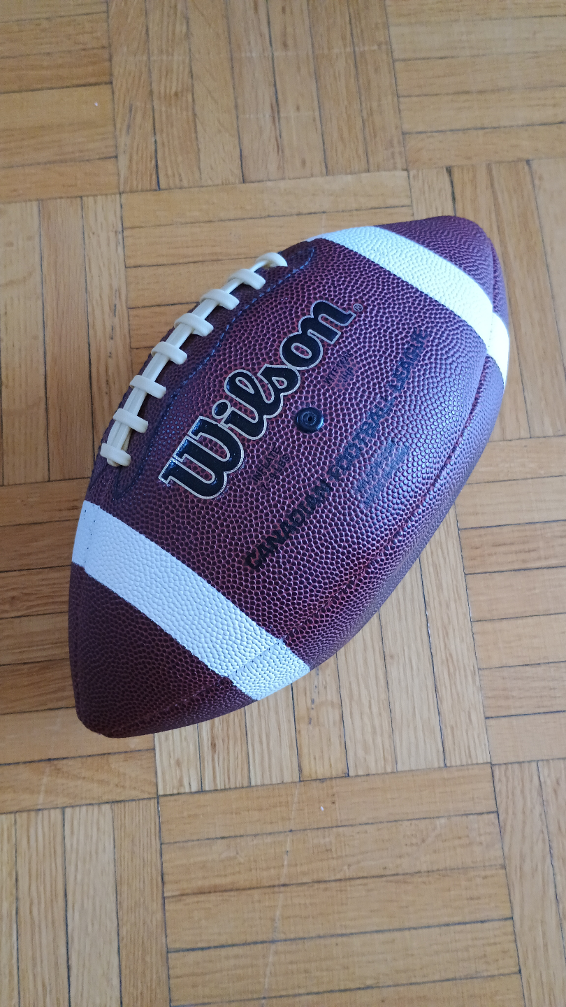 Brown leather football. White stripes. Like New condition. Great for practice or casual play.