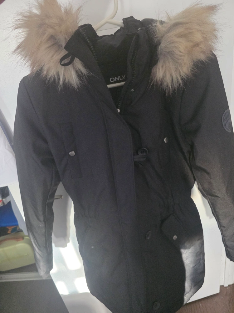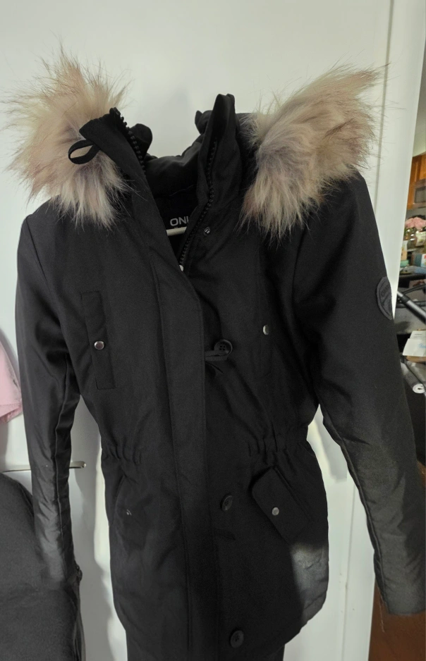 ONLY Black Winter Parka with Faux Fur Trim xs