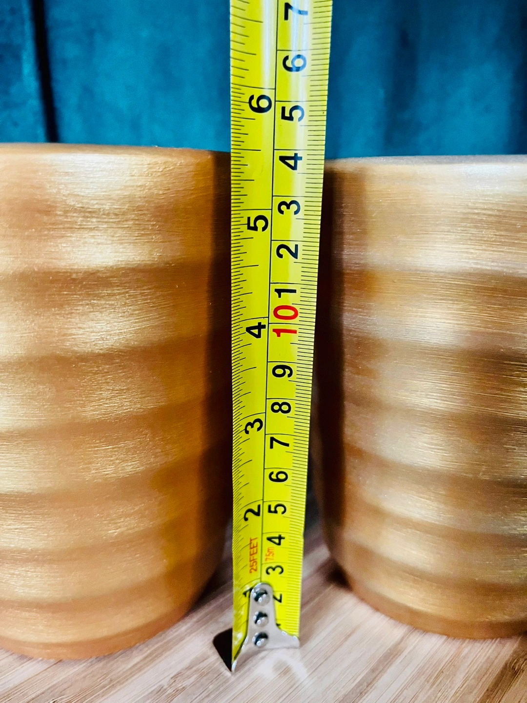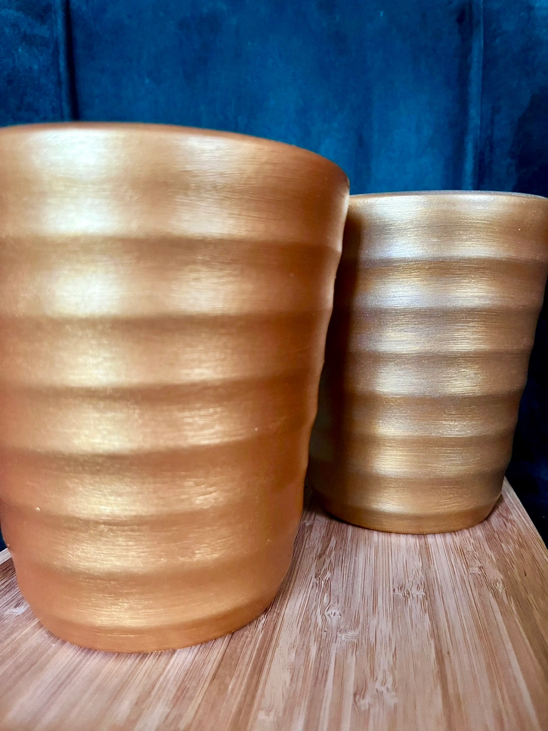 2212 gold ceramic planters Ribbed design Height: 14 cm (5.5”) Diameter: 12 cm (4.5”)