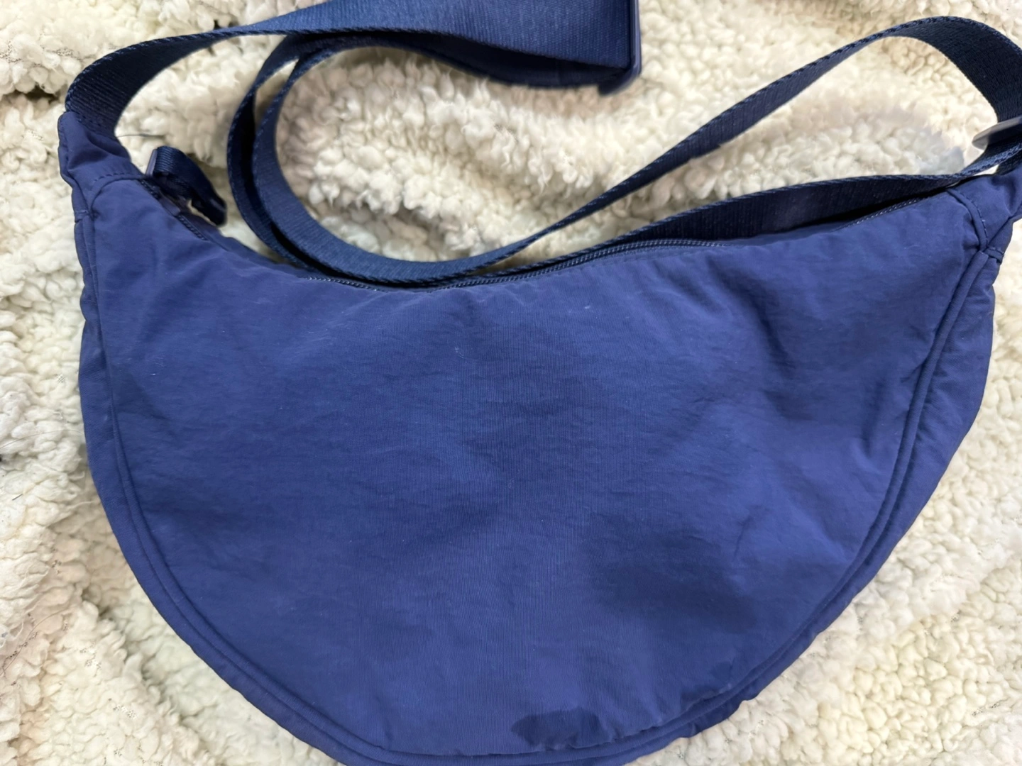 Small navy blue crossbody bag. Zip closure. Adjustable strap with 2 inner pockets. Lightweight nylon material. Perfect for everyday use. Cash and pick up. C3