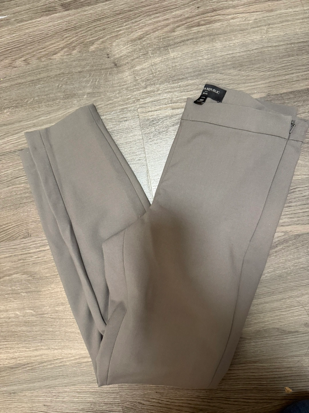 Grey slim-leg ankle pants. Excellent condition. Zipper and hook closure. Fabric is a woven material, feels like a trouser. Cash and pick up.