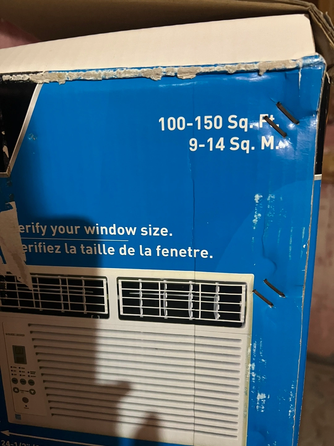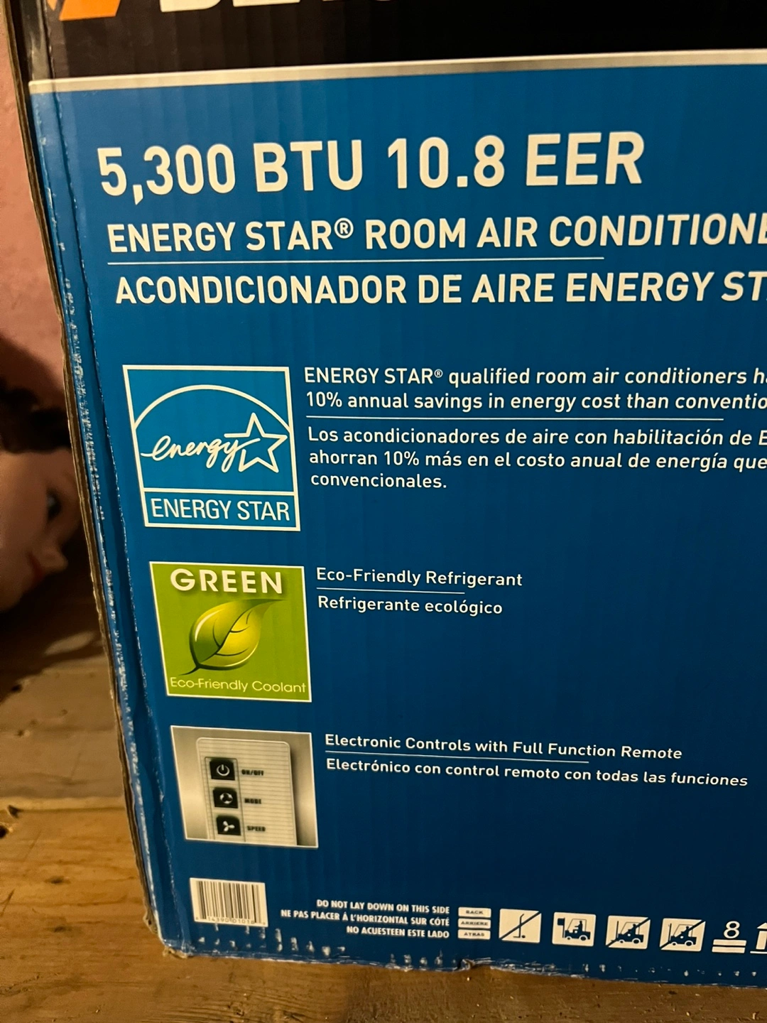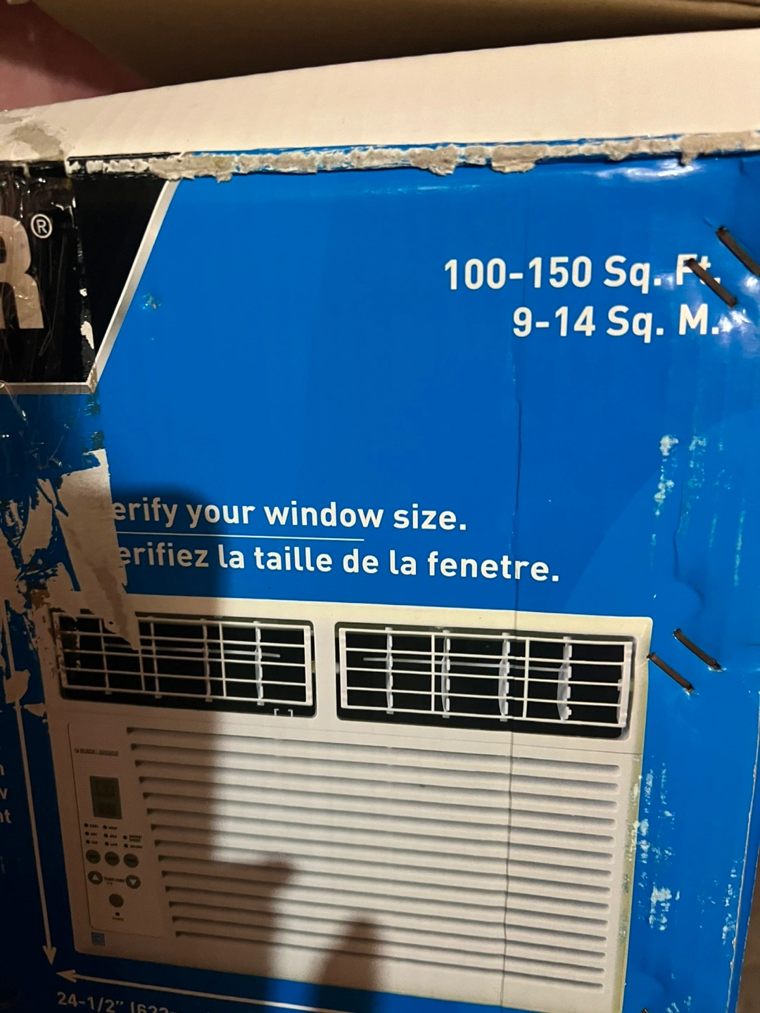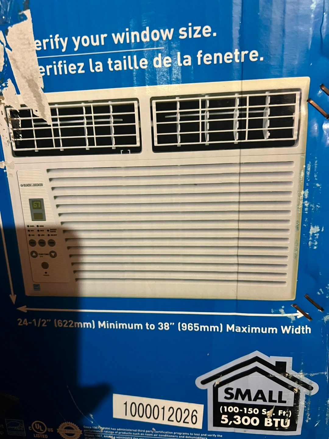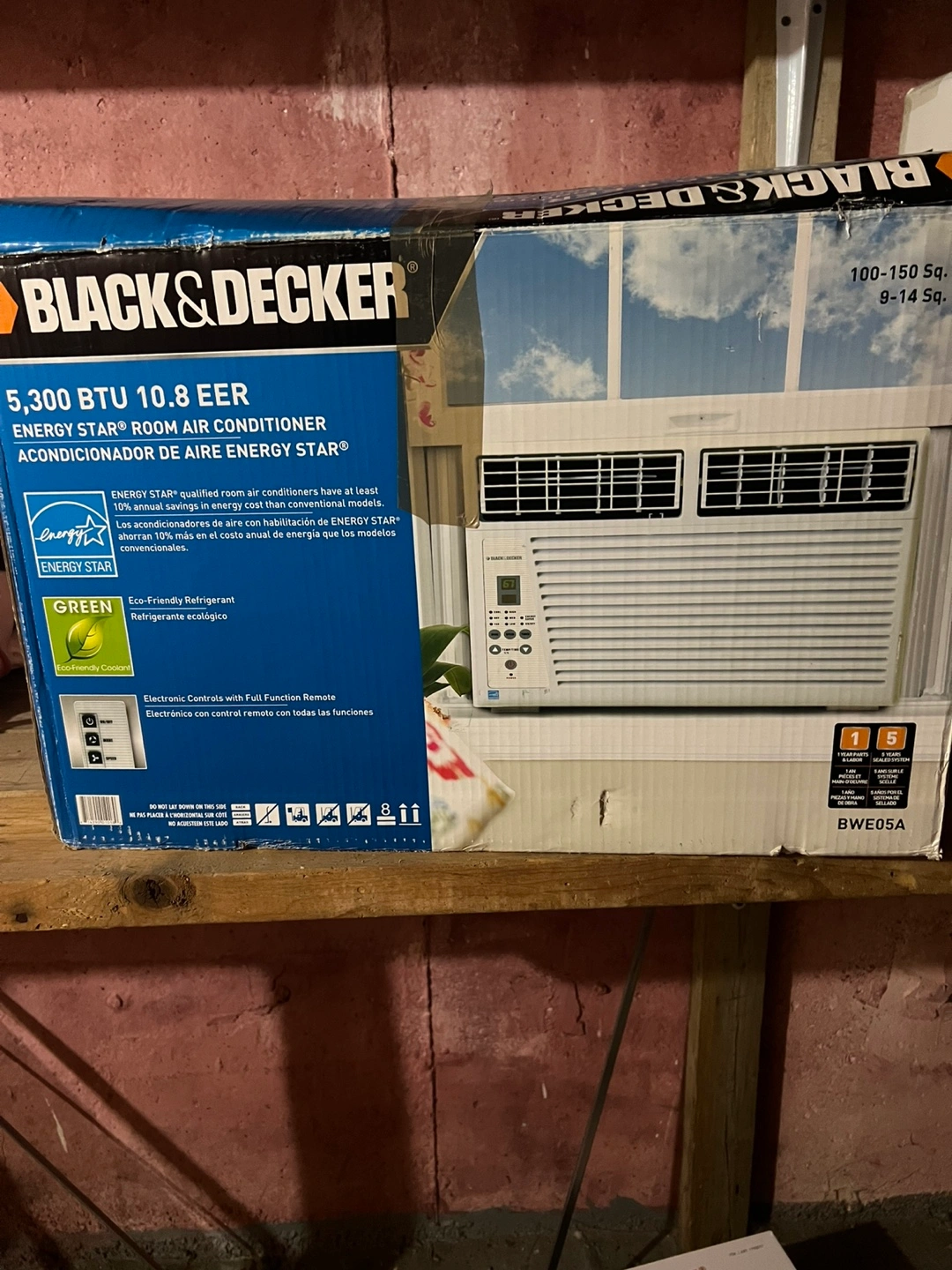 Keep cool with this new Black & Decker 5,300 BTU window air conditioner, perfect for spaces up to 150 square feet. It features electronic controls with a full-function remote and an eco-friendly refrigerant. The box has a little damage, the unit has lightly used. price for quick selling * 5,300 BTU