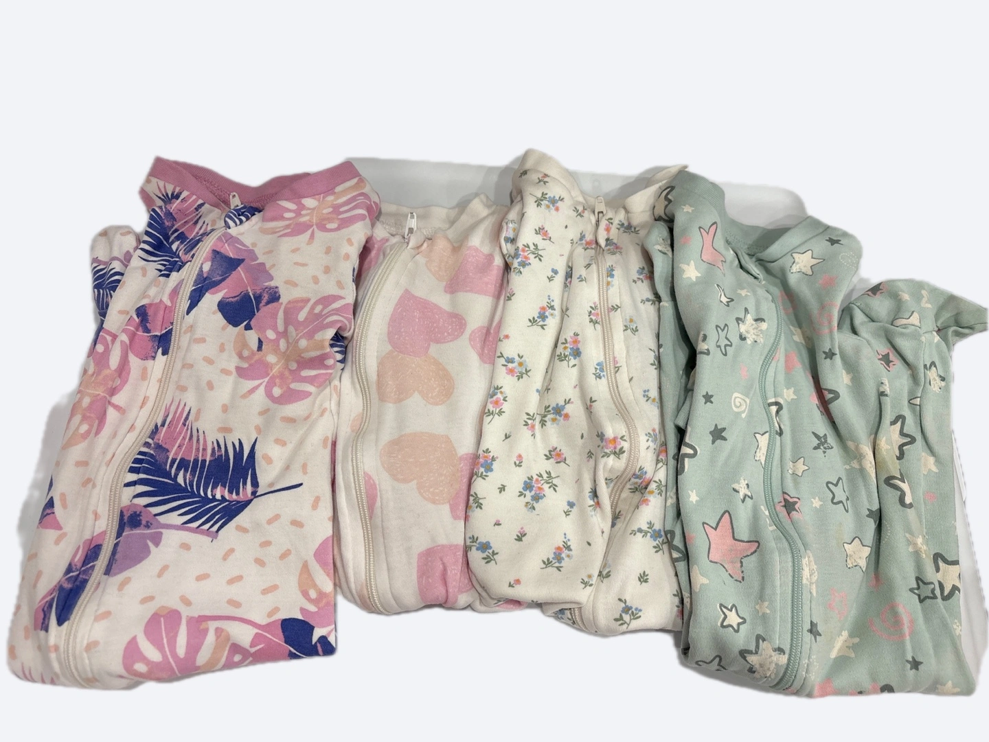 5483-6 months Four infant pijamas various patterns and colours. Zipper closure. Suitable for babies.