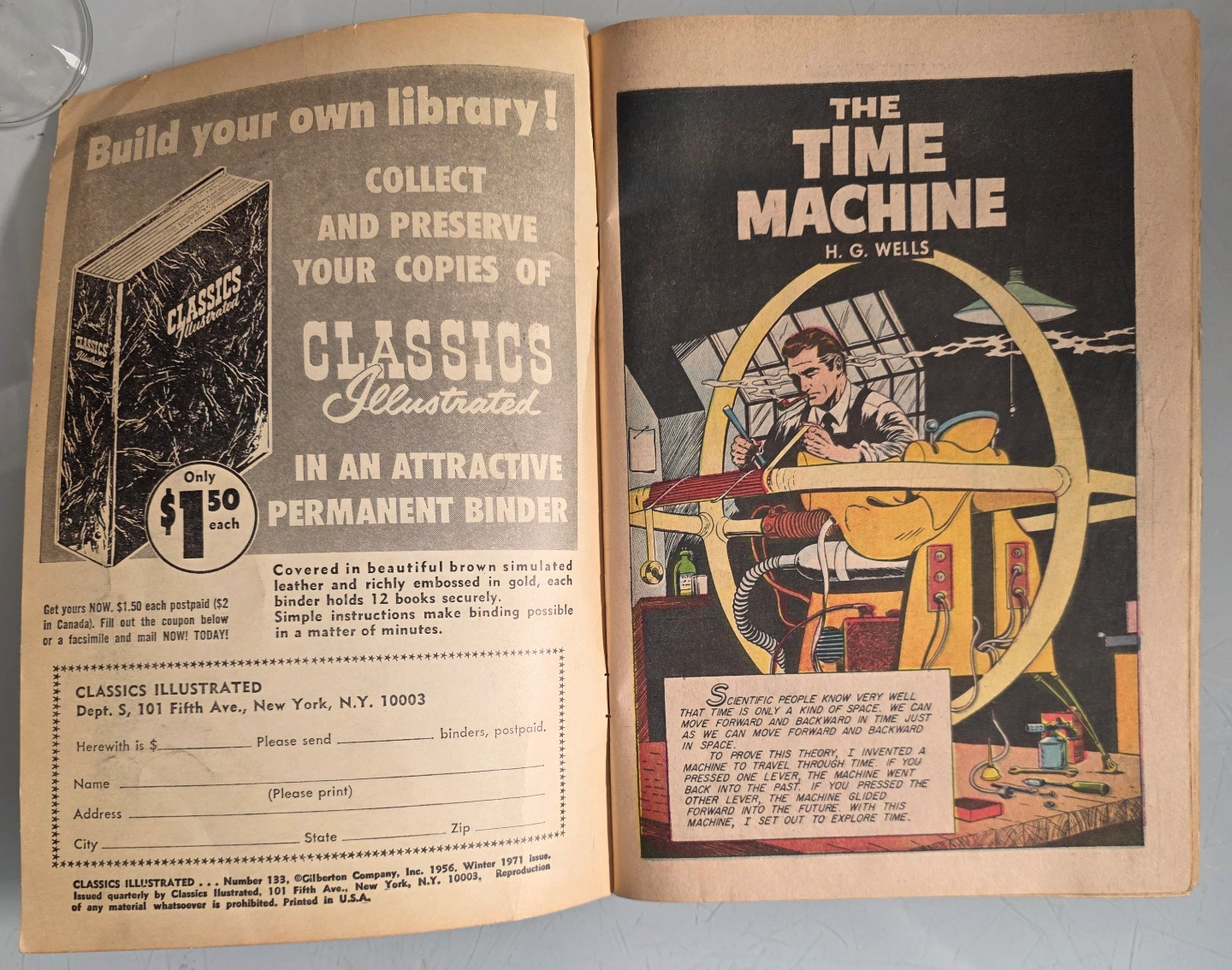 Vintage Classics Illustrated comic book. Number 133. Features H.G. Wells' The Time Machine. Shows some wear.