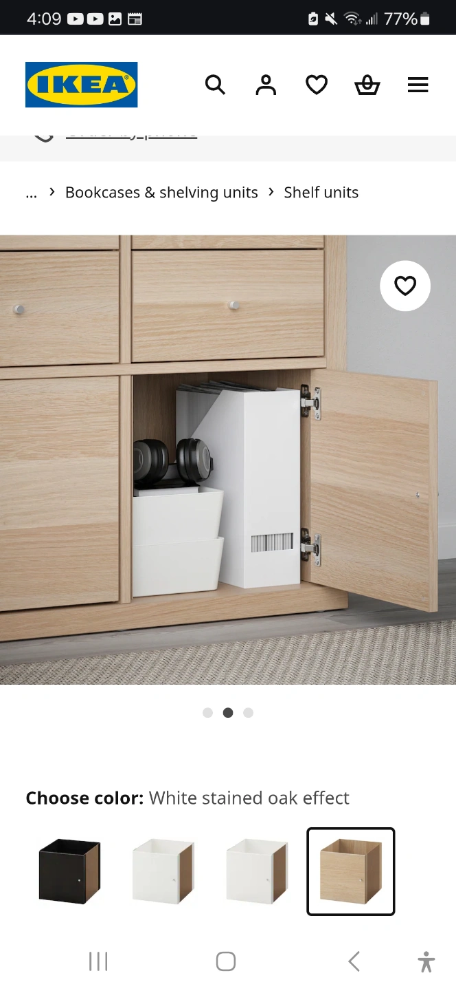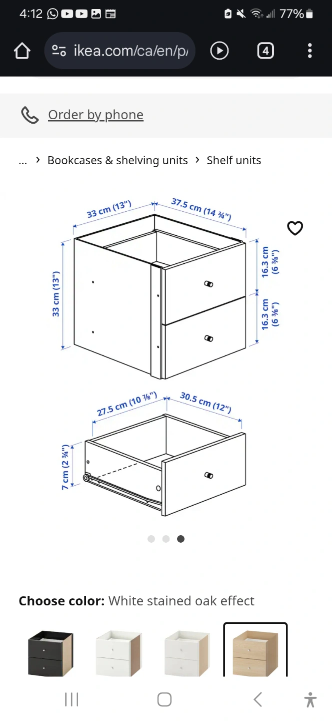 All pieces in a white stained oak effect finish as in the picture. Hardware is in silver/chrome.