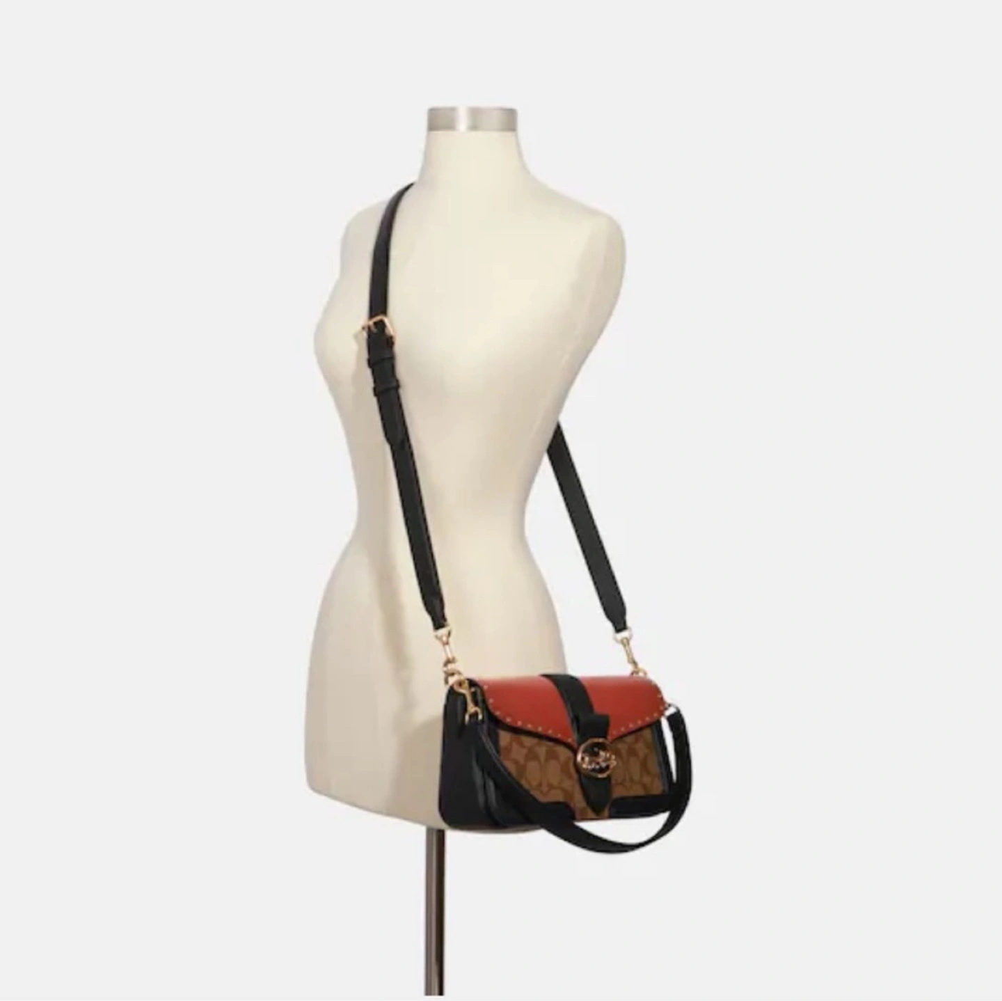 Beautiful Coach shoulder bag. Features a brown and black colour block design. Gold-toned hardware. Adjustable strap. Excellent condition. $621 was the original price.