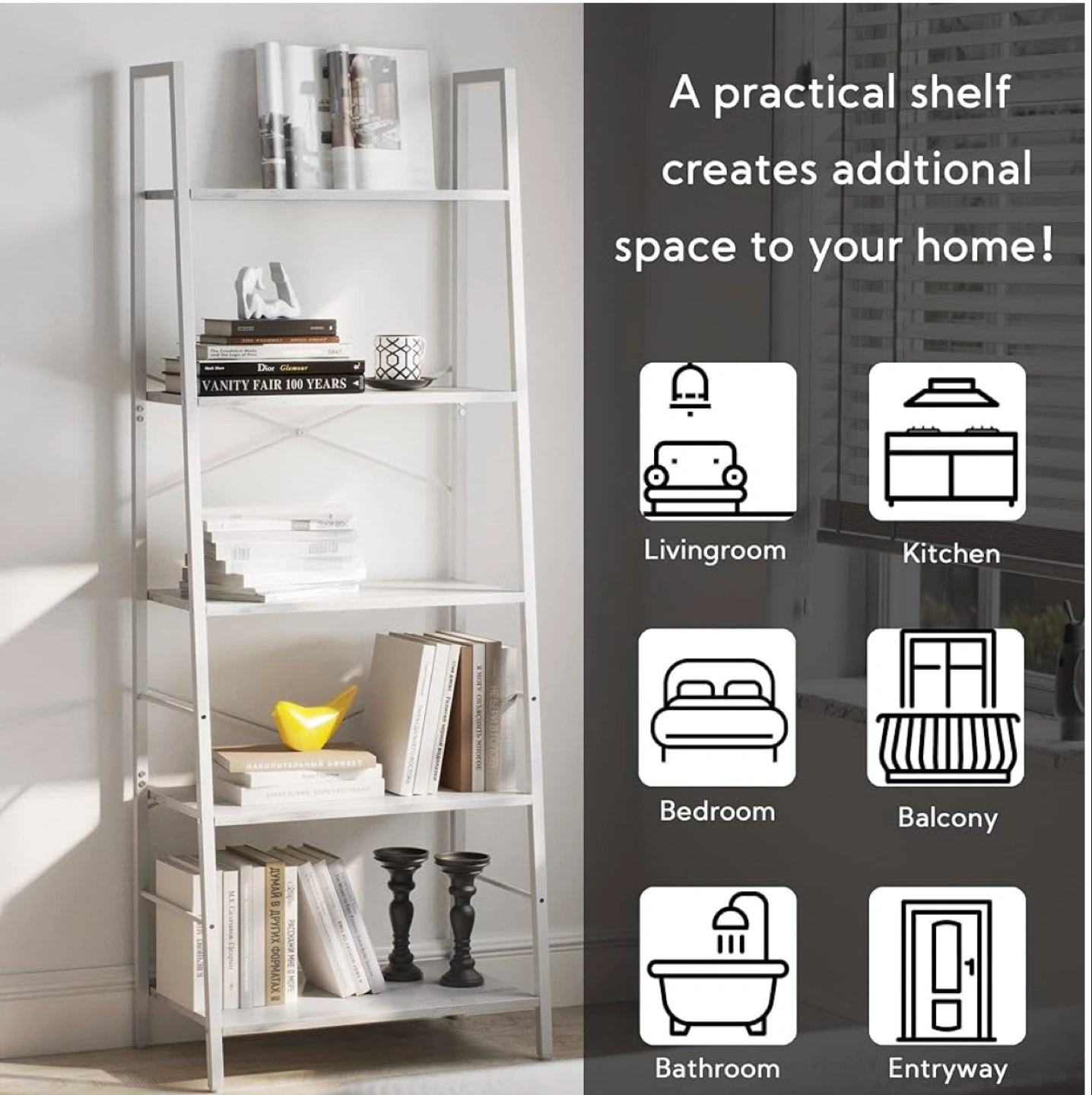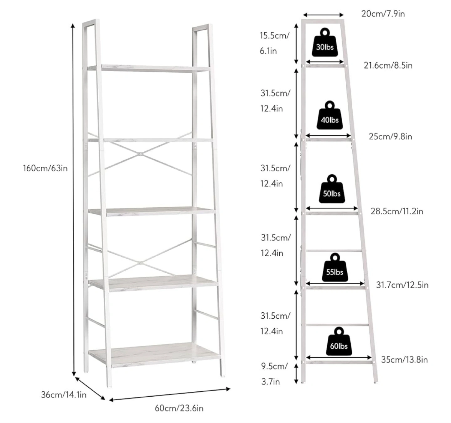 Five-Tier Ladder Shelf - White