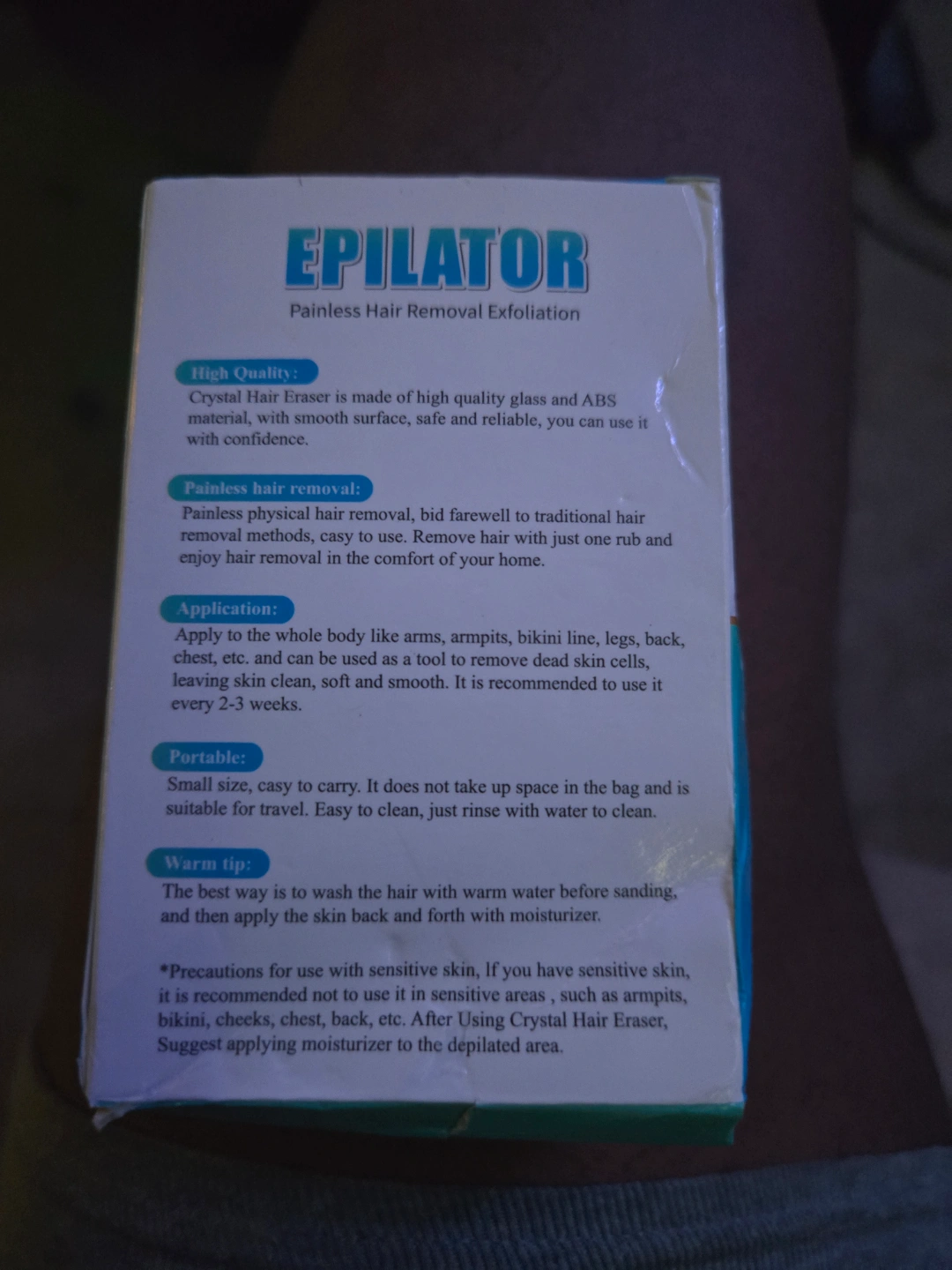Painless hair removal. Safe and reliable. Use on arms, armpits, bikini line, legs, back, chest, and more. Small and easy to carry. Clean with water. Use with moisturizer.