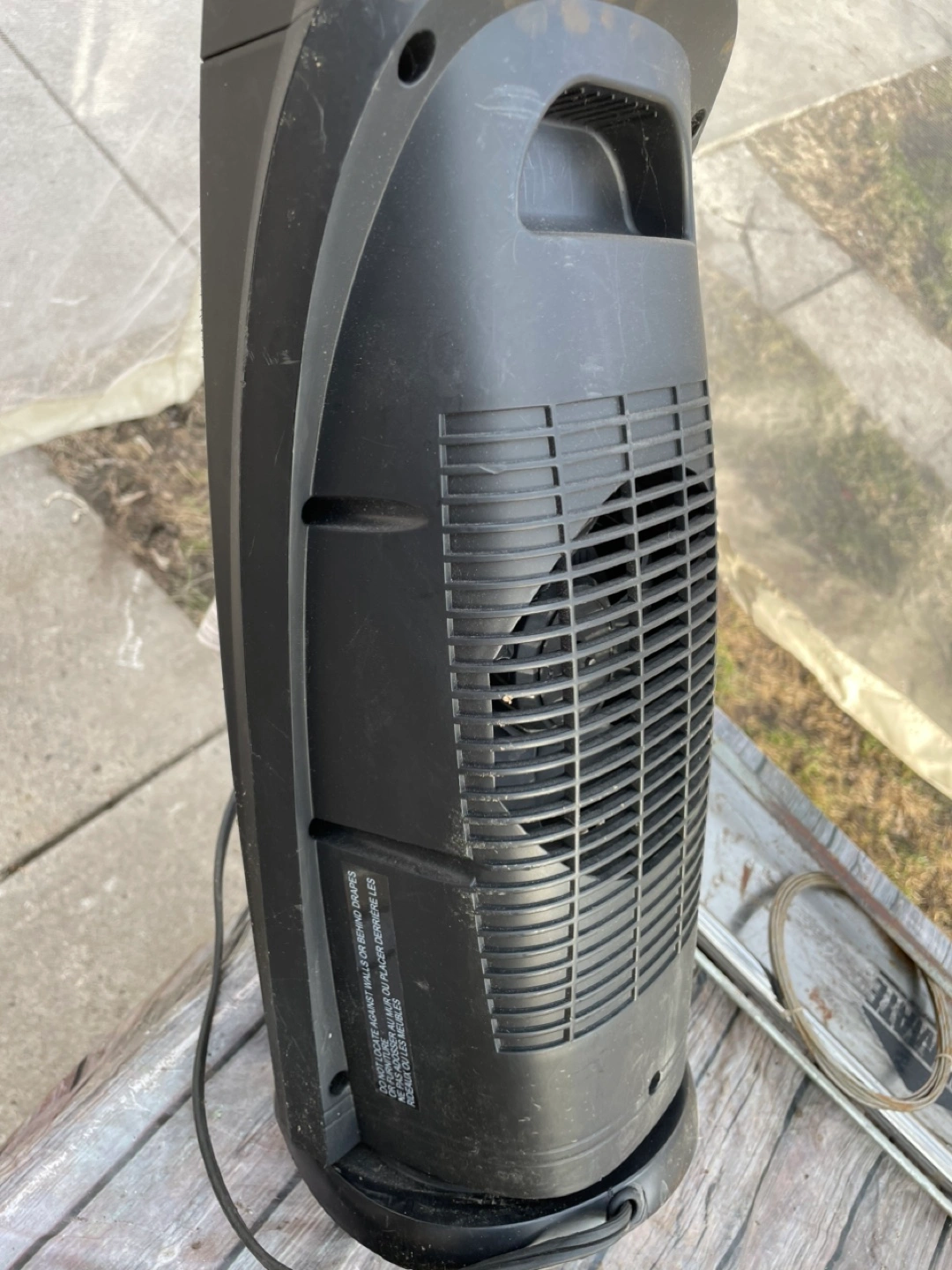 Black ceramic heater. Oscillating function. Multiple heat settings. Used condition.
