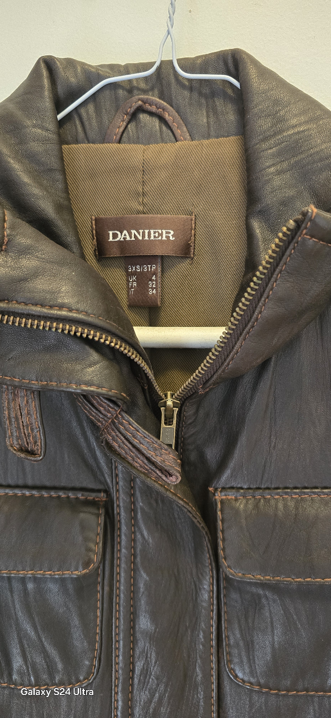 DANIER Women's Brown Leather Jacket, Size Small