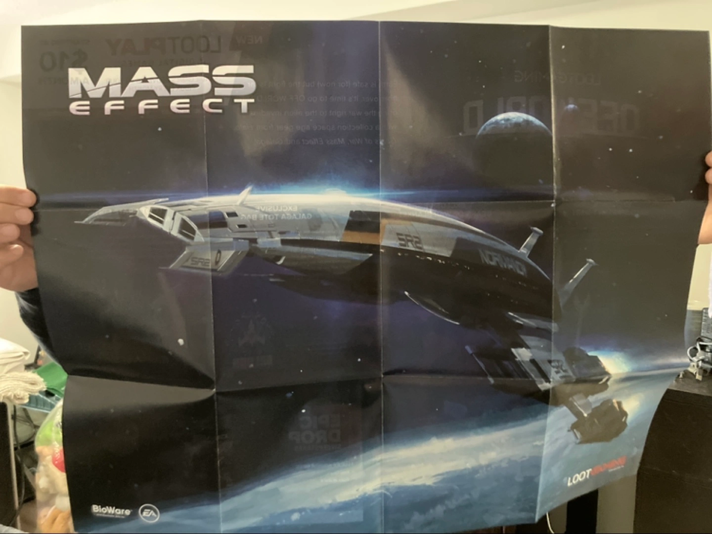 Large format poster featuring the Normandy SR2 from Mass Effect. Part of a Loot Crate exclusive. BioWare and EA logos visible.