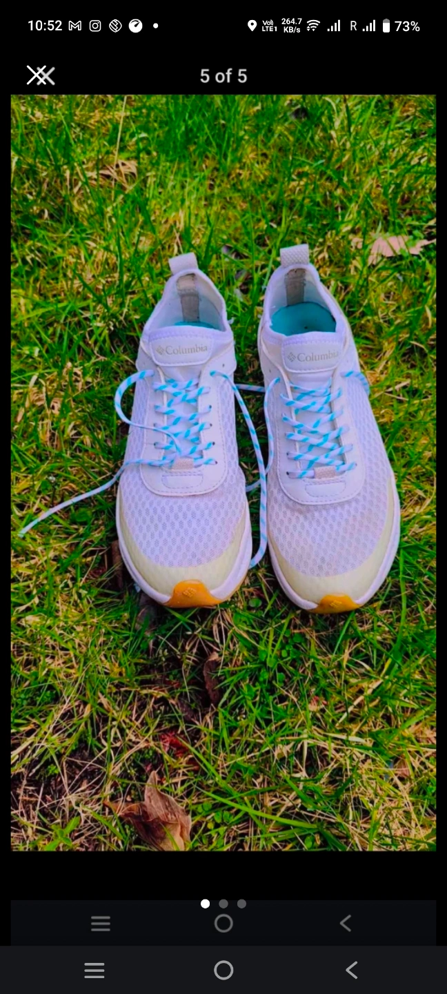 Lightly used Columbia running shoes. White with light teal accents. Size 7.5 US women's. Good condition. Comfortable and stylish.