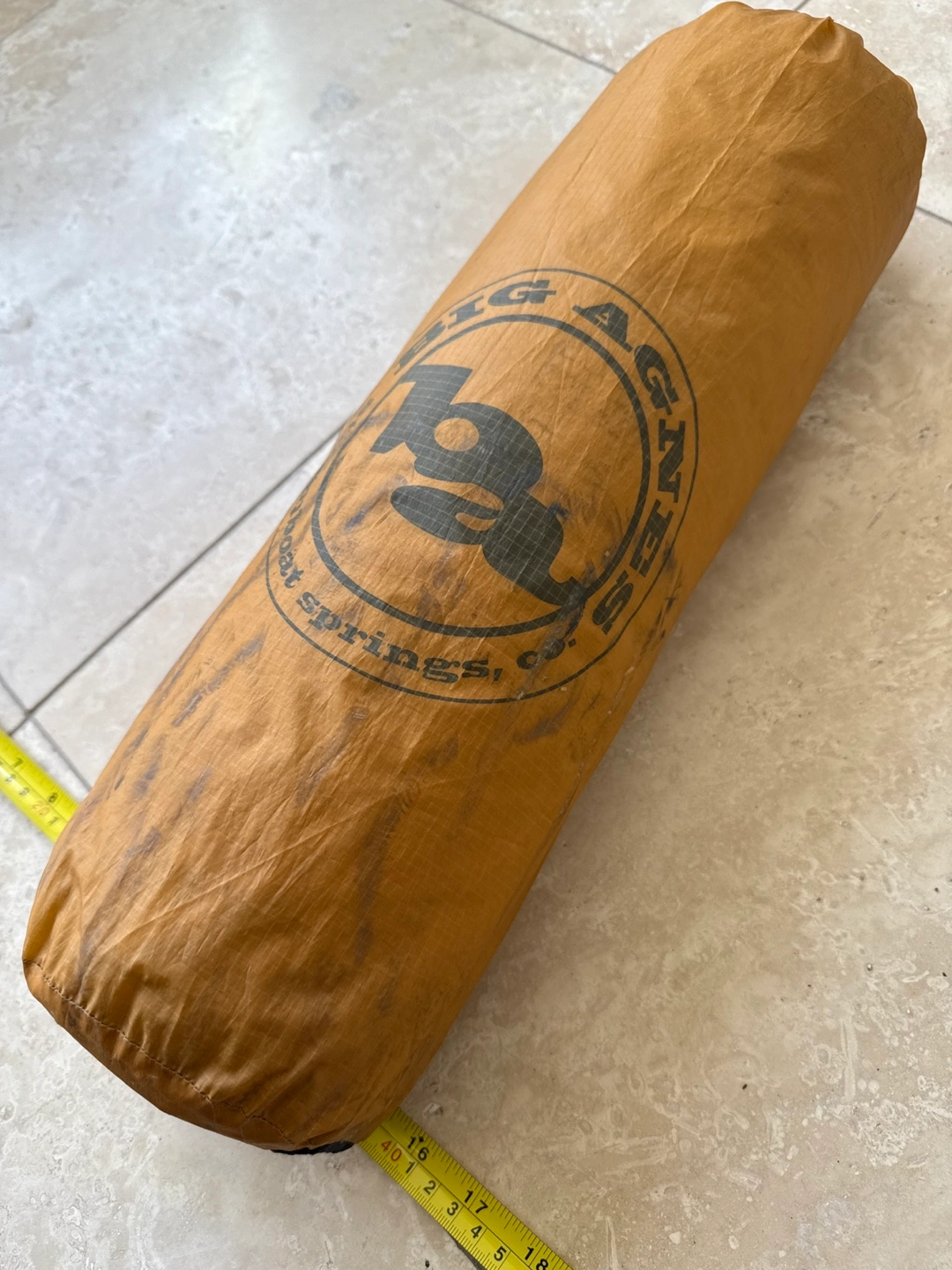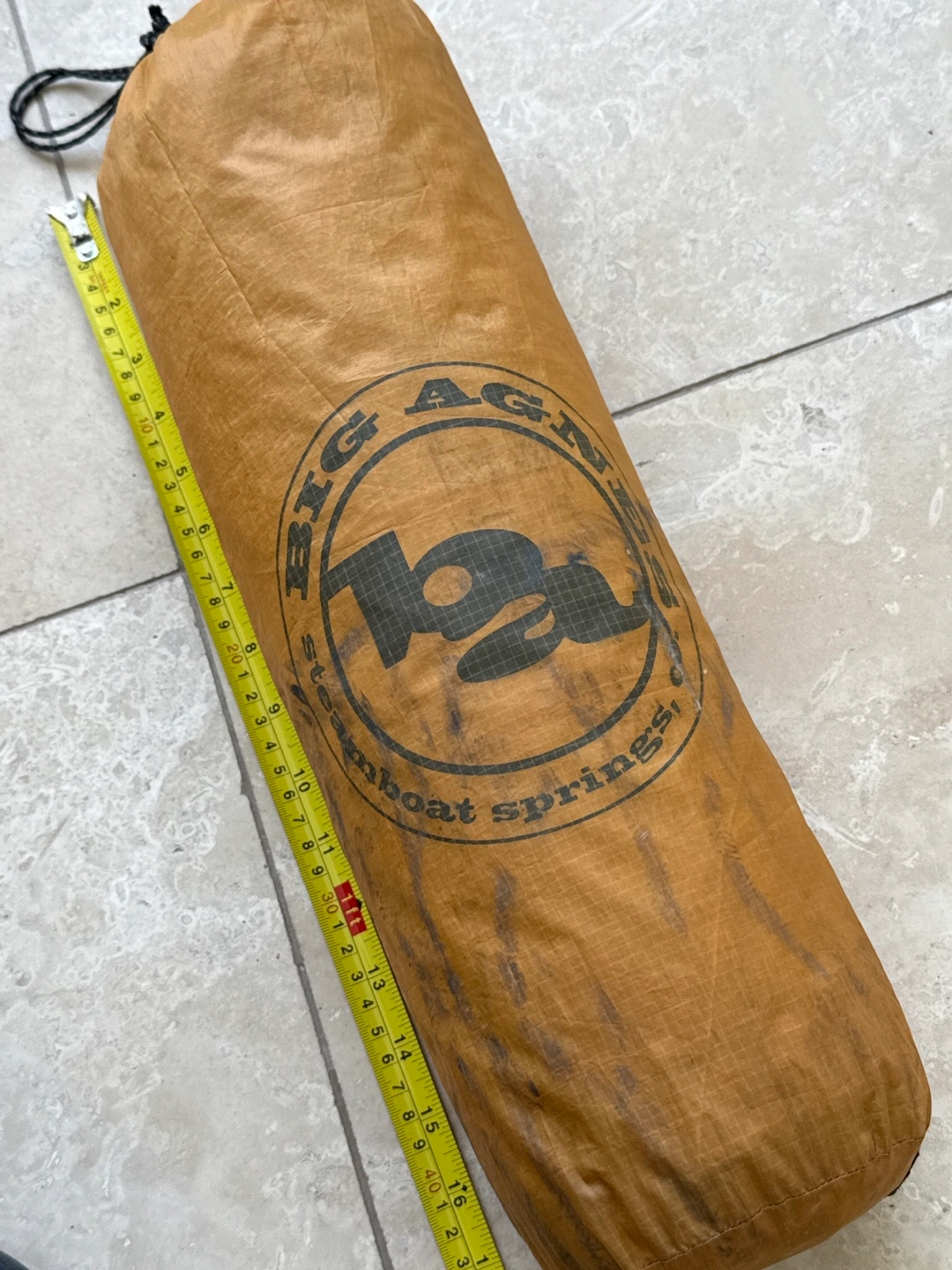 Used Big Agnes Fly Creek UL1 backpacking tent. Tan colour. Shows some dirt and wear. Excellent for lightweight backpacking adventures.