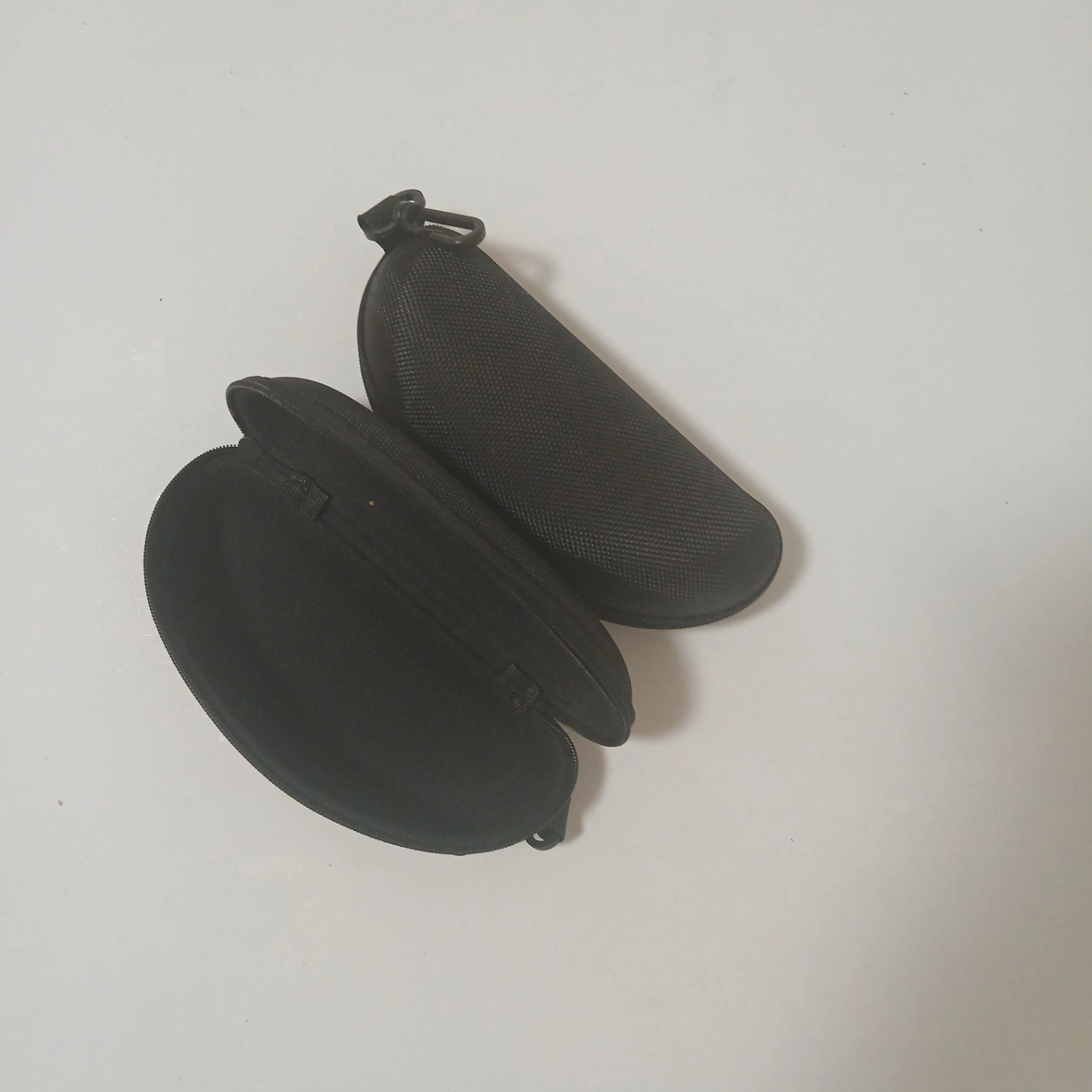 Pair of black semi-hard eyeglass cases. Lightweight and portable. Good for travel or storage.