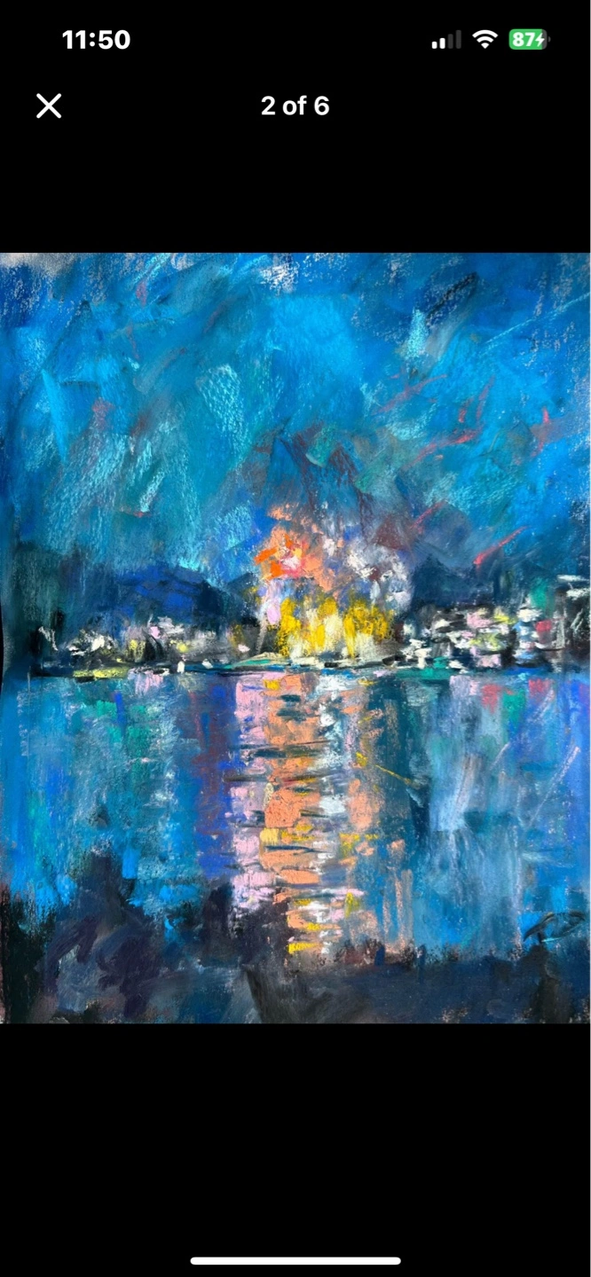 “Summer Nights” 9x12 inches Pastel on toned paper This is an original pastel painting. It will be shipped/handed over to you unframed, protected with glassine paper in between two foamcore boards. Frame is not included, but I will supply framing suggestions if needed I welcome inquiries for commissions. Pickup in Surrey near King George or message me for shipping via Canada Post