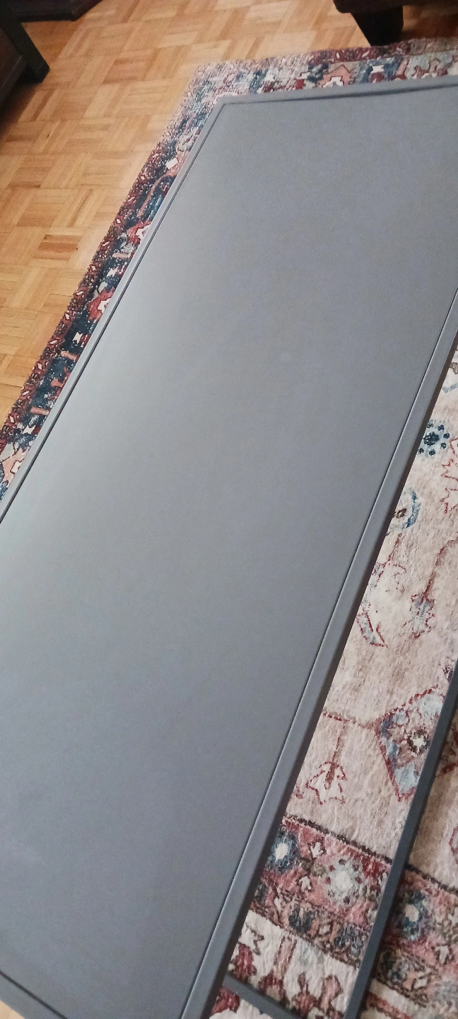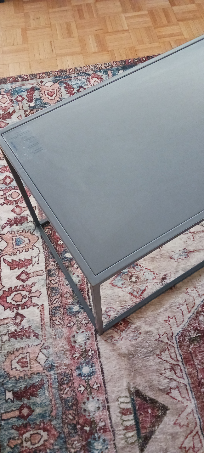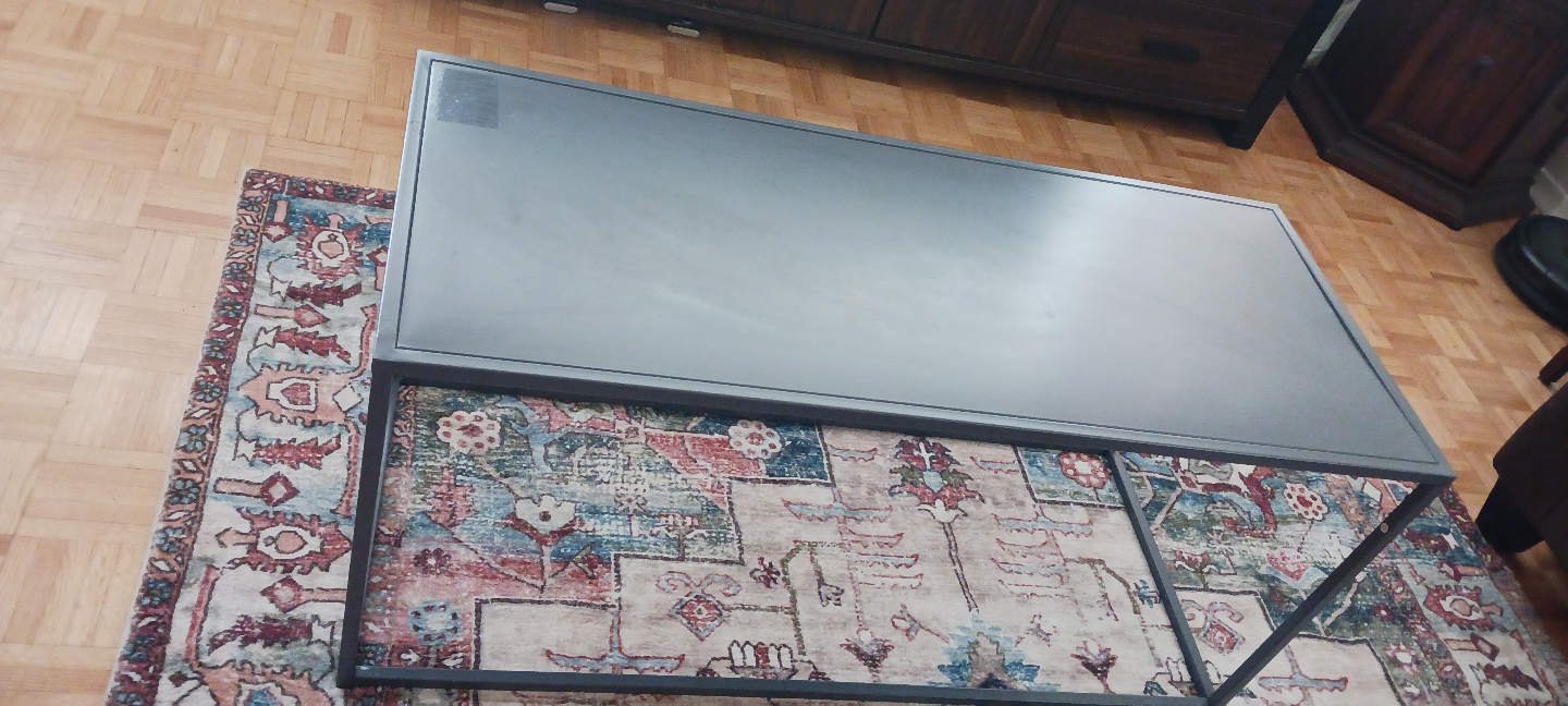 Rectangular coffee table, can be used for TV too. Dark grey metal frame and top. Simple design. Good for small spaces. Almost new. moving sale.