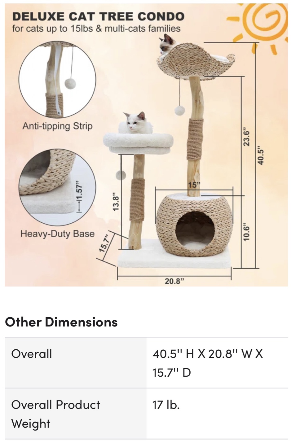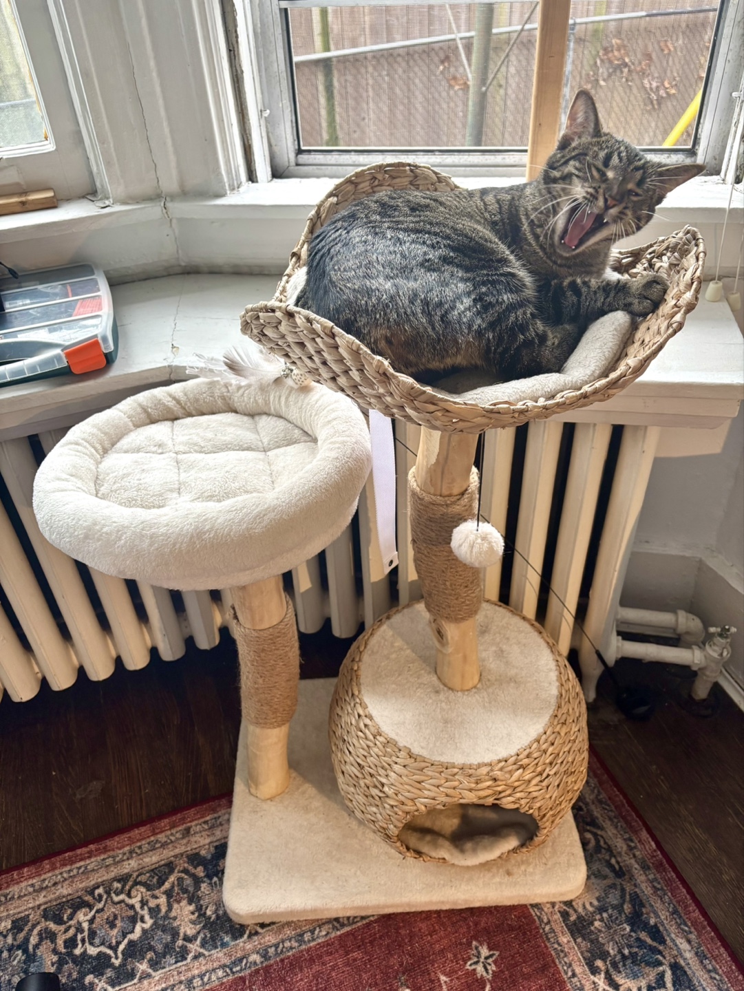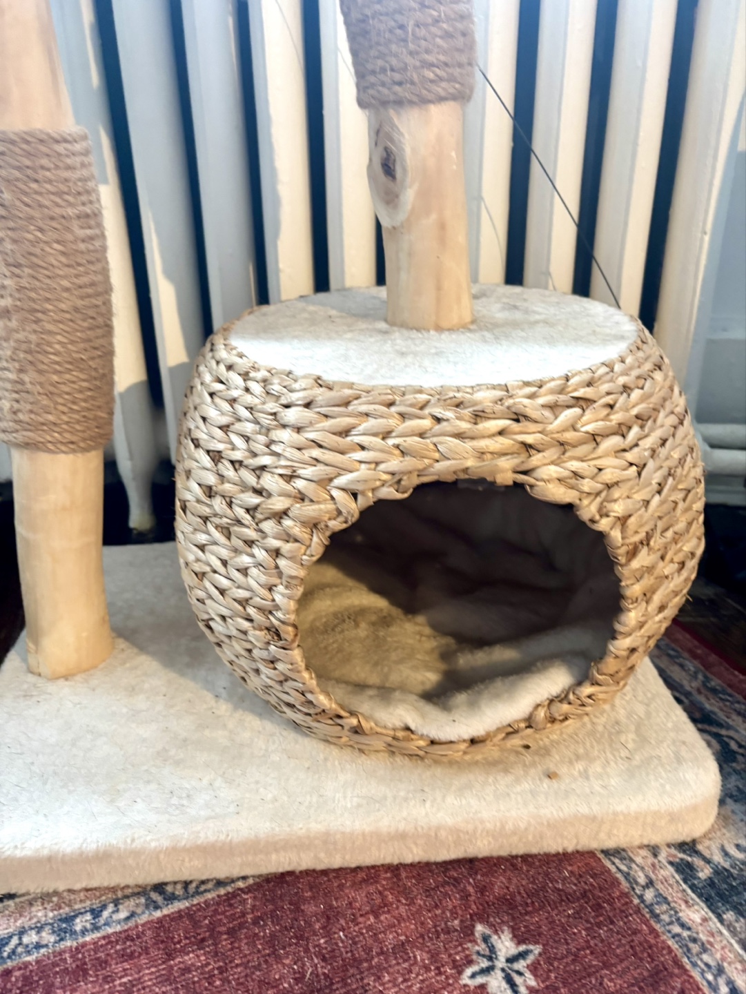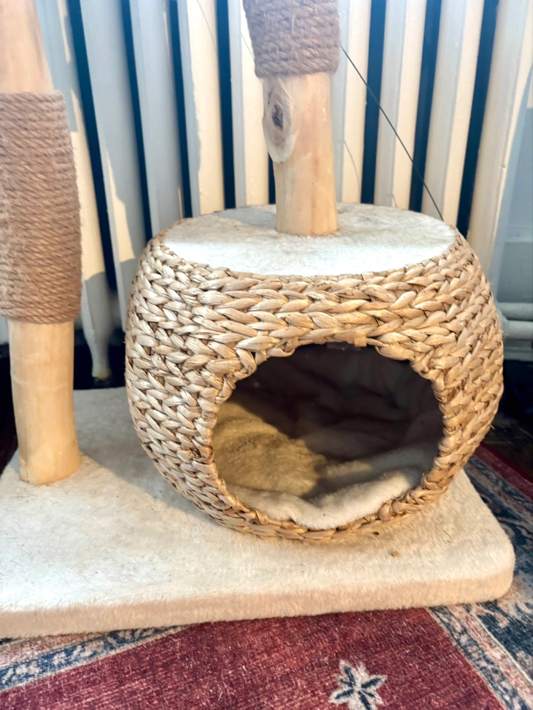 Originally purchased for $293.79 from Wayfair. This stylish and sturdy cat tree is perfect for playful cats who love to climb, scratch, and nap. Made from solid wood with sisal-covered posts to support natural scratching behavior.