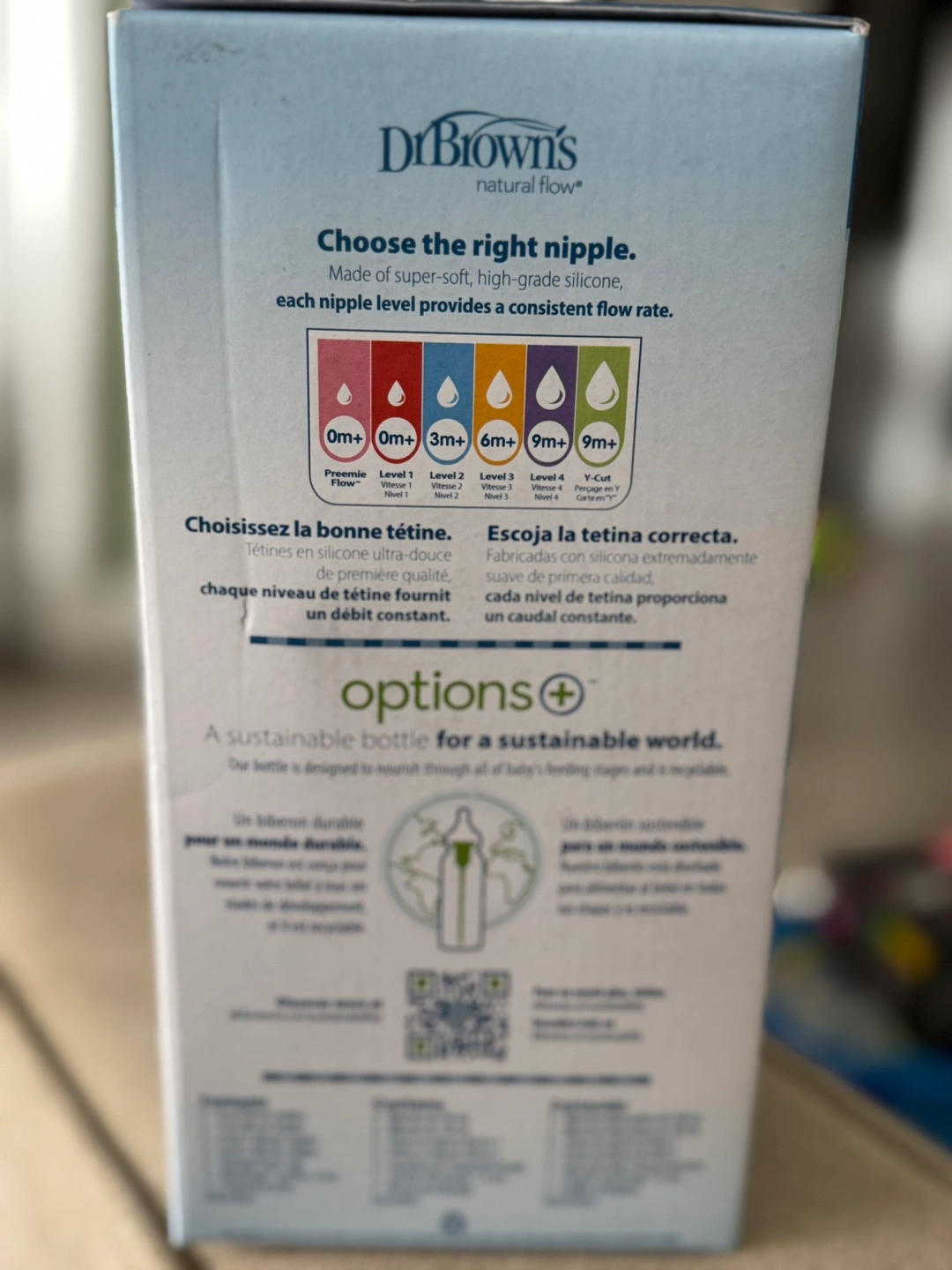 New in box. Includes 3 250ML/8 oz and 2 120 ML/4 oz bottles, 5 Level 1 nipples, 2 Level 2 nipples, 1 pacifier, and 2 storage/travel caps.