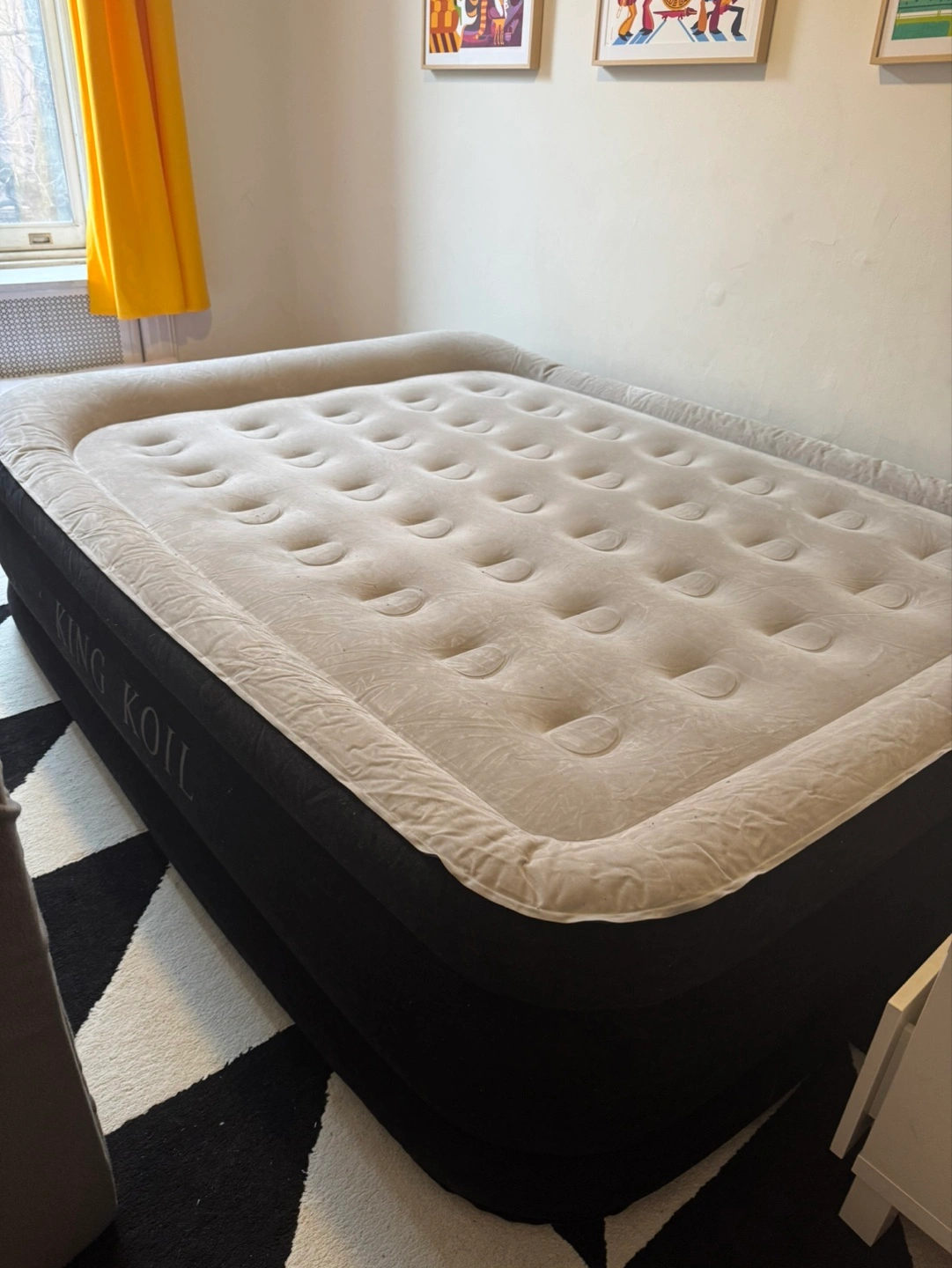 Electric air mattress, queen size. Includes built-in pump to inflate and deflate. Fills up in minutes. No leak. Includes super comfy pillowtop mattress pad. Only used a few times for guests. Non-smoking home.