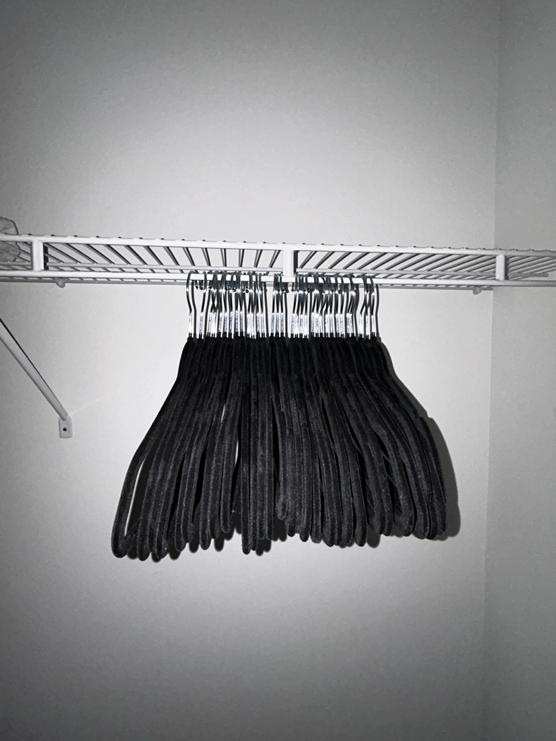101Set of black velvet hangers. Non-slip. Great for closets. Ideal for clothing storage.