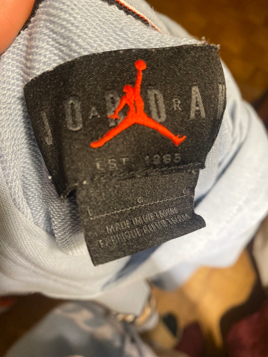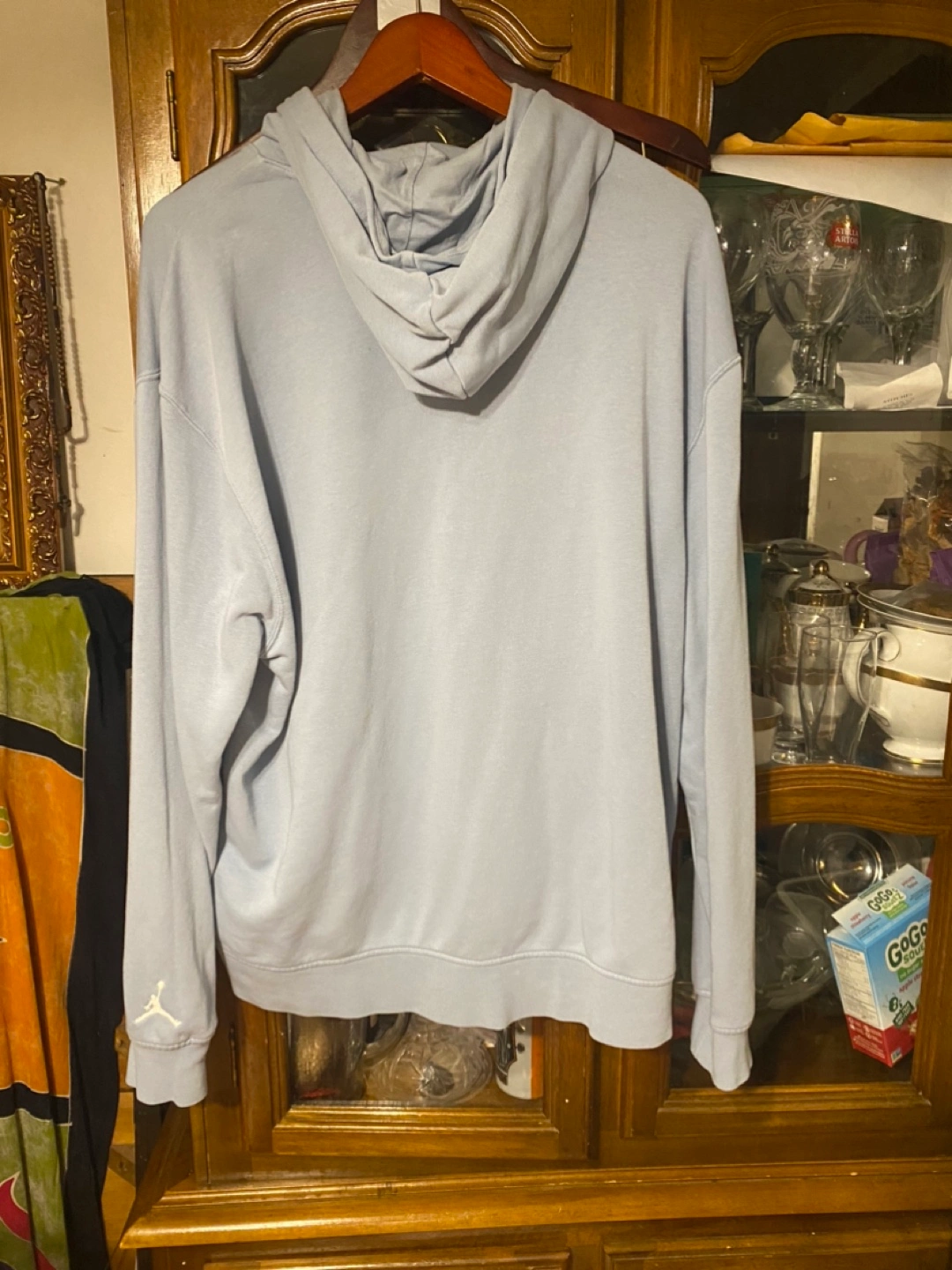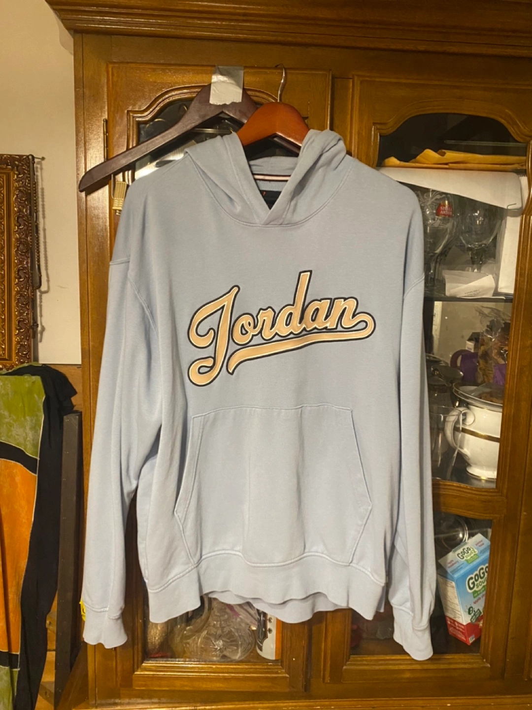 Light blue Jordan hoodie. Features large script logo on front. Long sleeves, kangaroo pocket. Very Good condition.