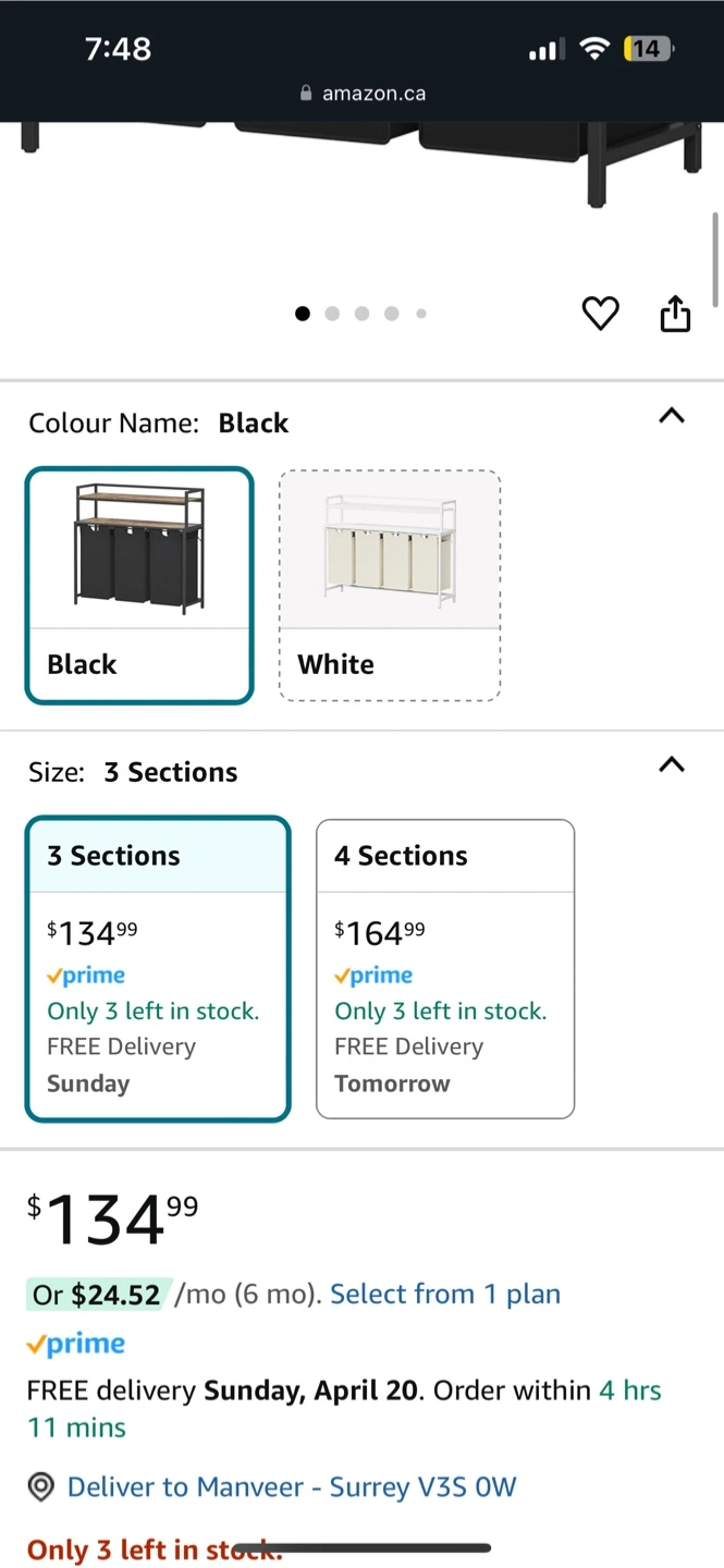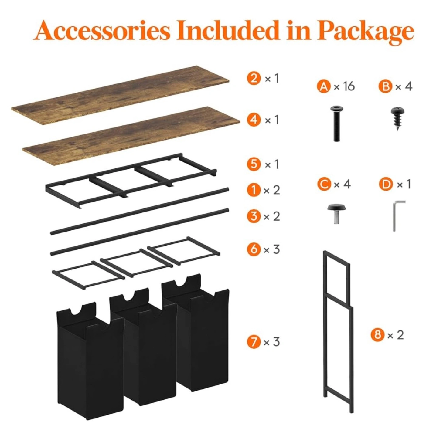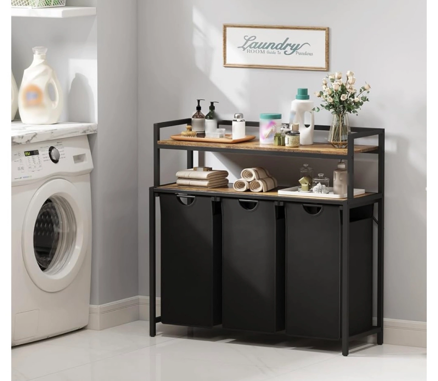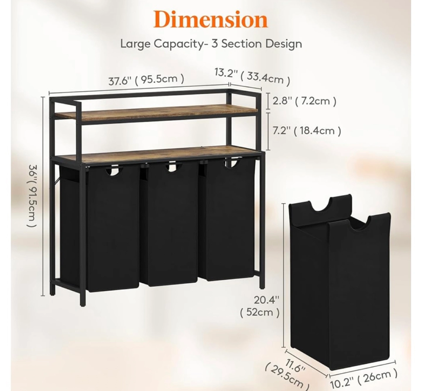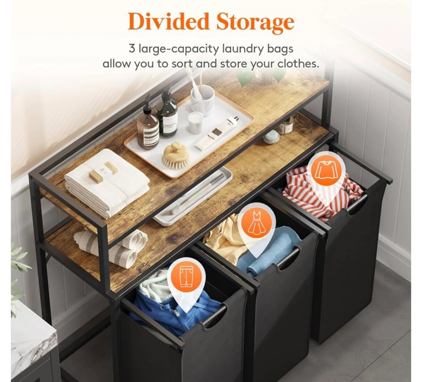 73Lifewit Laundry Hamper 3 Section, 120L Pull Out Laundry Clothes Basket Organizer with Shelves and 3 Removable Bags, Rustic Brown Brand new in box Pickup at 150 and 69 avenues