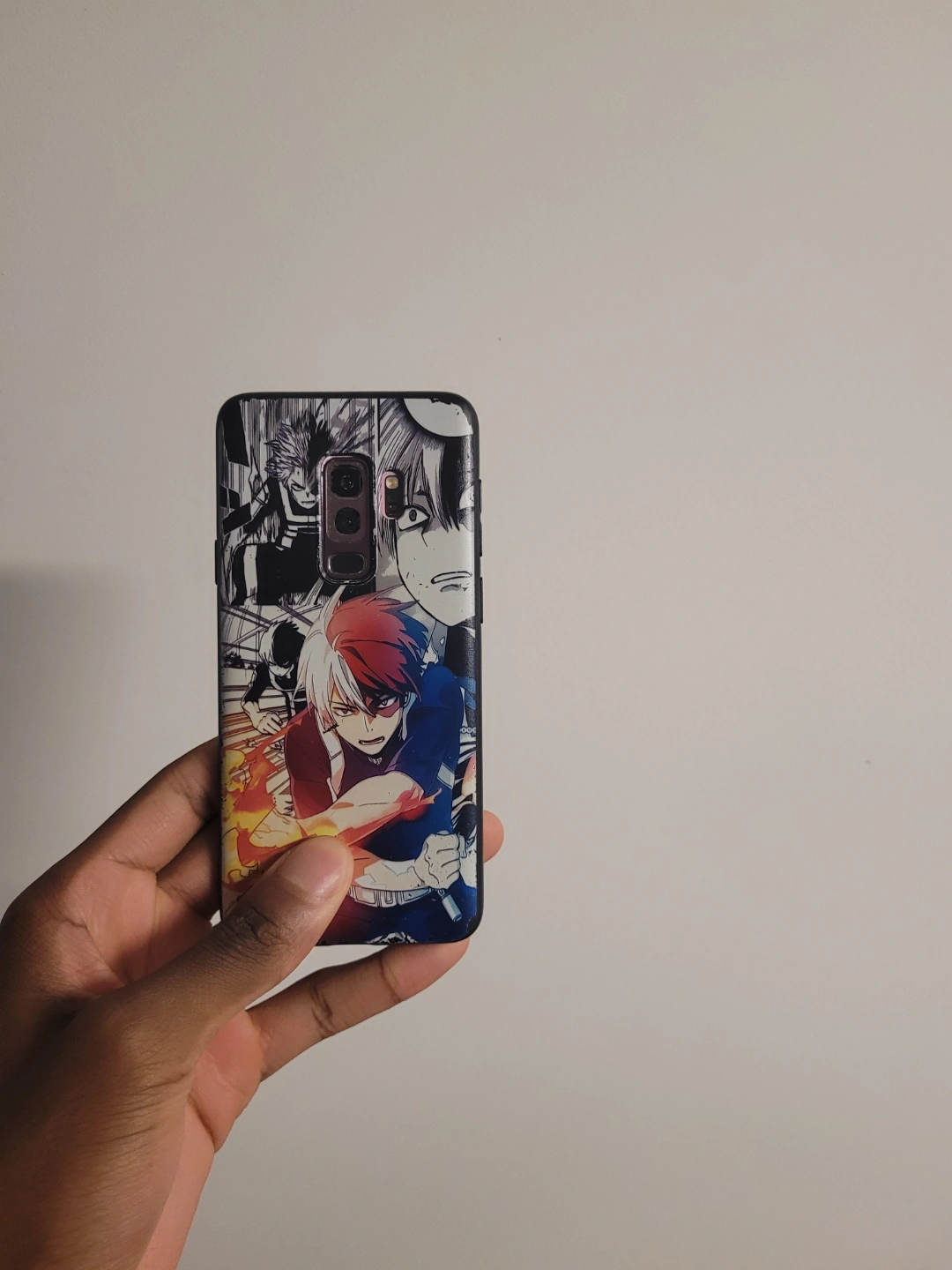 Used Samsung Galaxy S9 plus phone. Features a My Hero Academia design. Good condition.