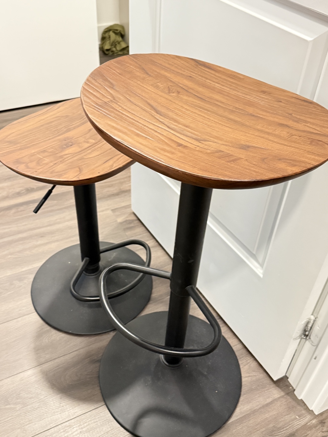 1 / 11 / 1Buy & SellPair of Mid-Century Modern Bar StoolsPair of Mid-Century Modern Bar Stools$90Two adjustable height bar stools. Wooden seats and black metal bases. Footrests included.ConditionGoodWHERE TO MEETLiberty VillageView MapSELLERNihaaLiberty Village7910 reviews0 chats·1 favorites·24 viewsSEND CHAT TO SELLERHi Nihaa! I’m interested in your listing.Hi Nihaa! I’m interested in your listing.Get the Karrot app to chatSign In to chat