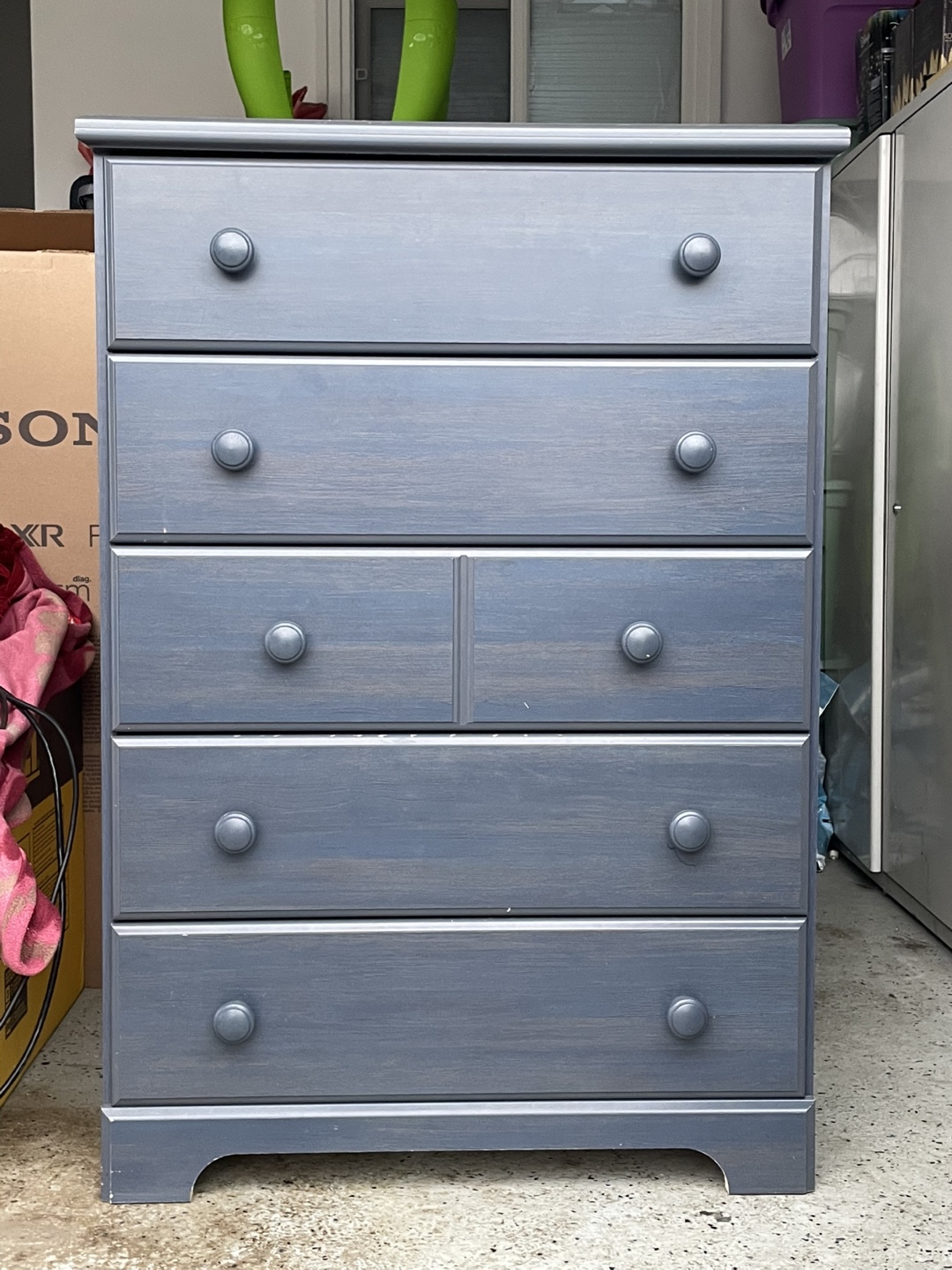 Buy & SellFive-Drawer Dresser - BlueFive-Drawer Dresser - Blue$50Five-drawer dresser. Dark grey-blue finish. Solid wood construction. Good used condition.ConditionGoodWHERE TO MEETCheck LocationView MapSELLERverifiedAbhayWalker1215 reviews12 chats·6 favorites·237 viewsSEND CHAT TO SELLERHi Abhay! I’m interested in your listing.Hi Abhay! I’m interested in your listing.Get the Karrot app to chatSign In to chat