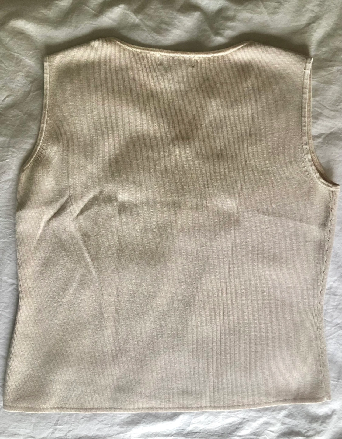 NEW SLEEVELESS NOTCHED NECK CREAM STRETCHKNIT SWEATER MEDIUM
