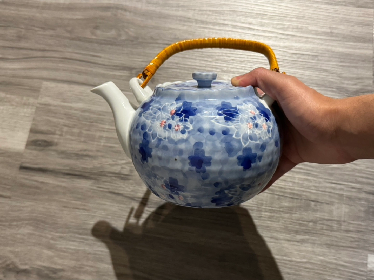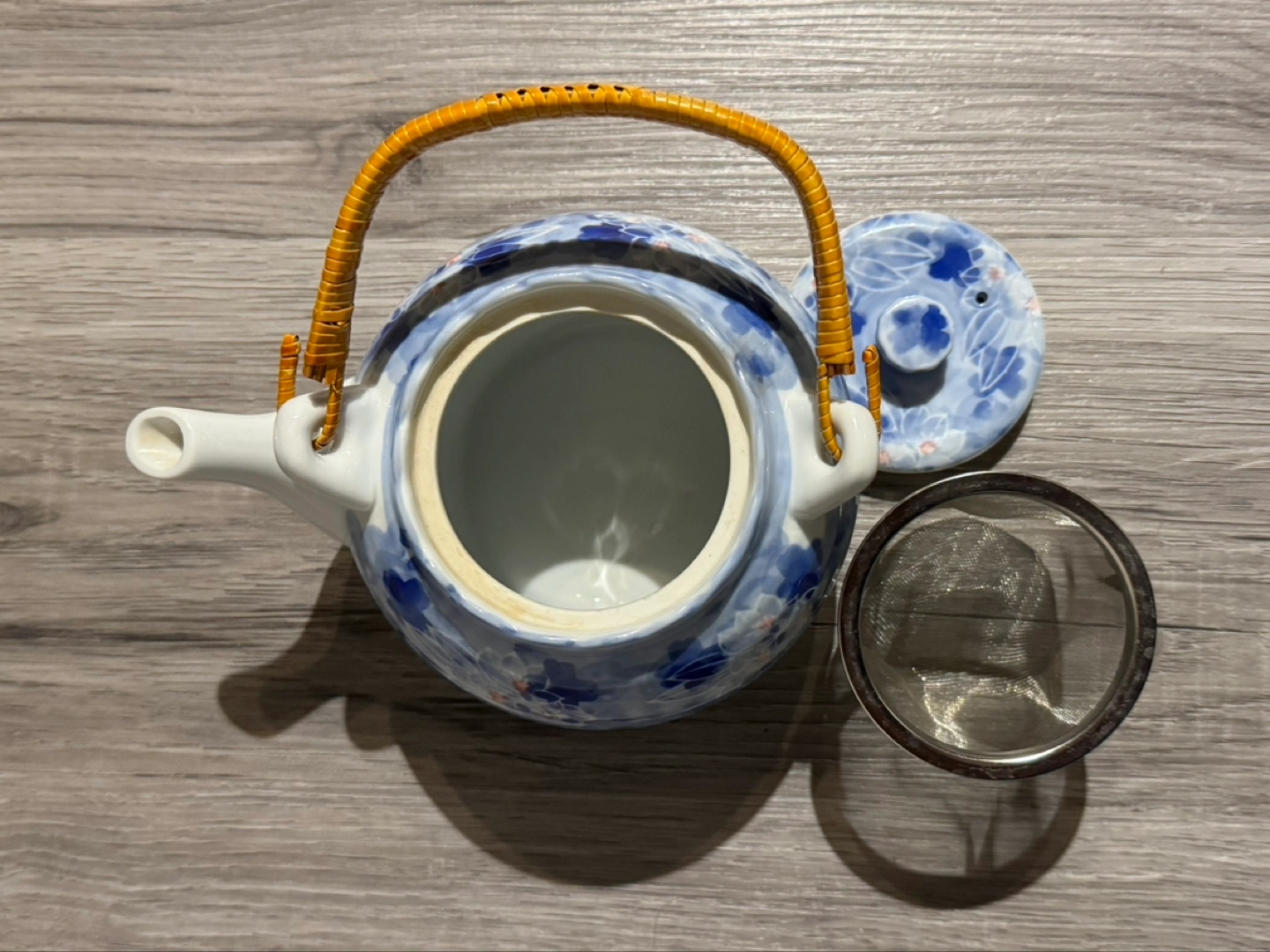 Beautiful teapot from Japan with a removable mesh infuser basket. Probably 900-1000 mL. Only used a few times over many years because I prefer a smaller capacity. Selling just to free up space.
