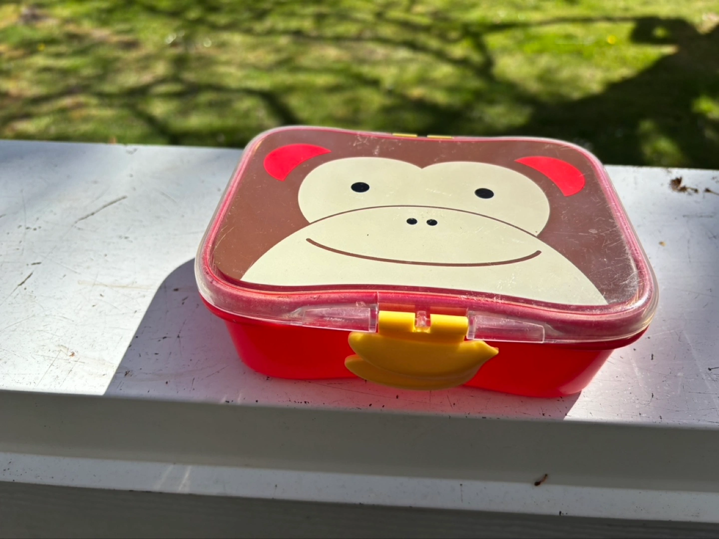 Adorable Skip Hop Zoo lunchbox. Features a cute monkey design. Perfect for little ones. Small size, ideal for snacks or small portions.