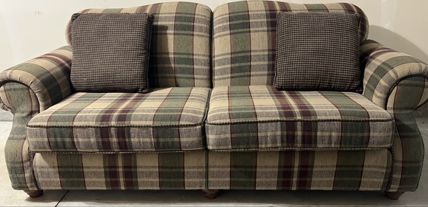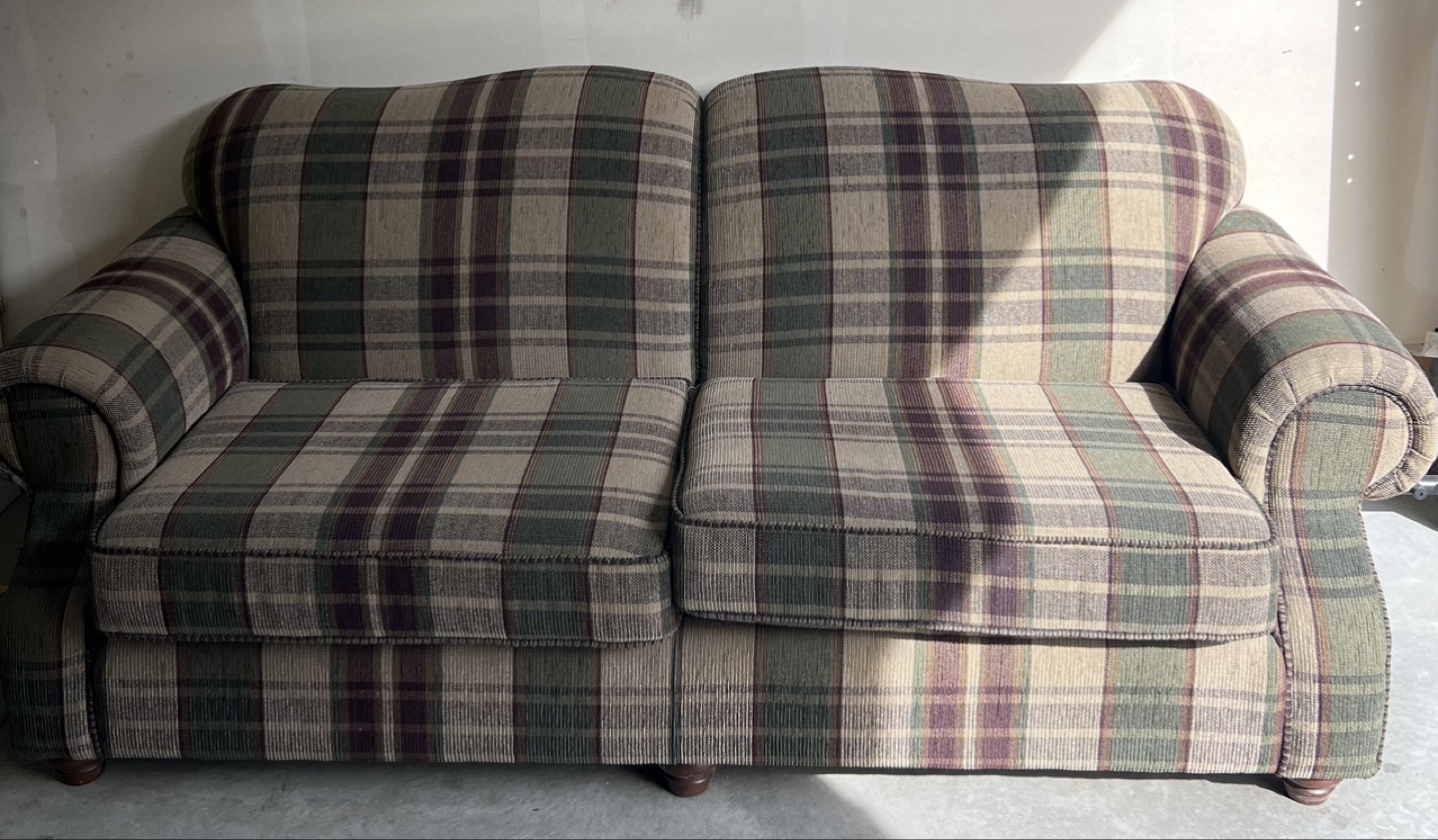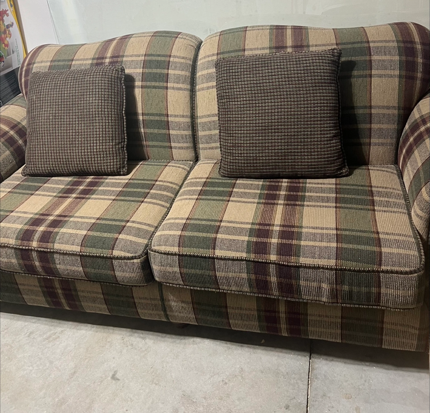 Comfortable loveseat, in great condition from pet free smoke free house Two-seater. Wooden legs. Neutral colours. I can deliver for an agreed fee