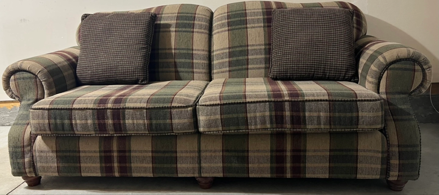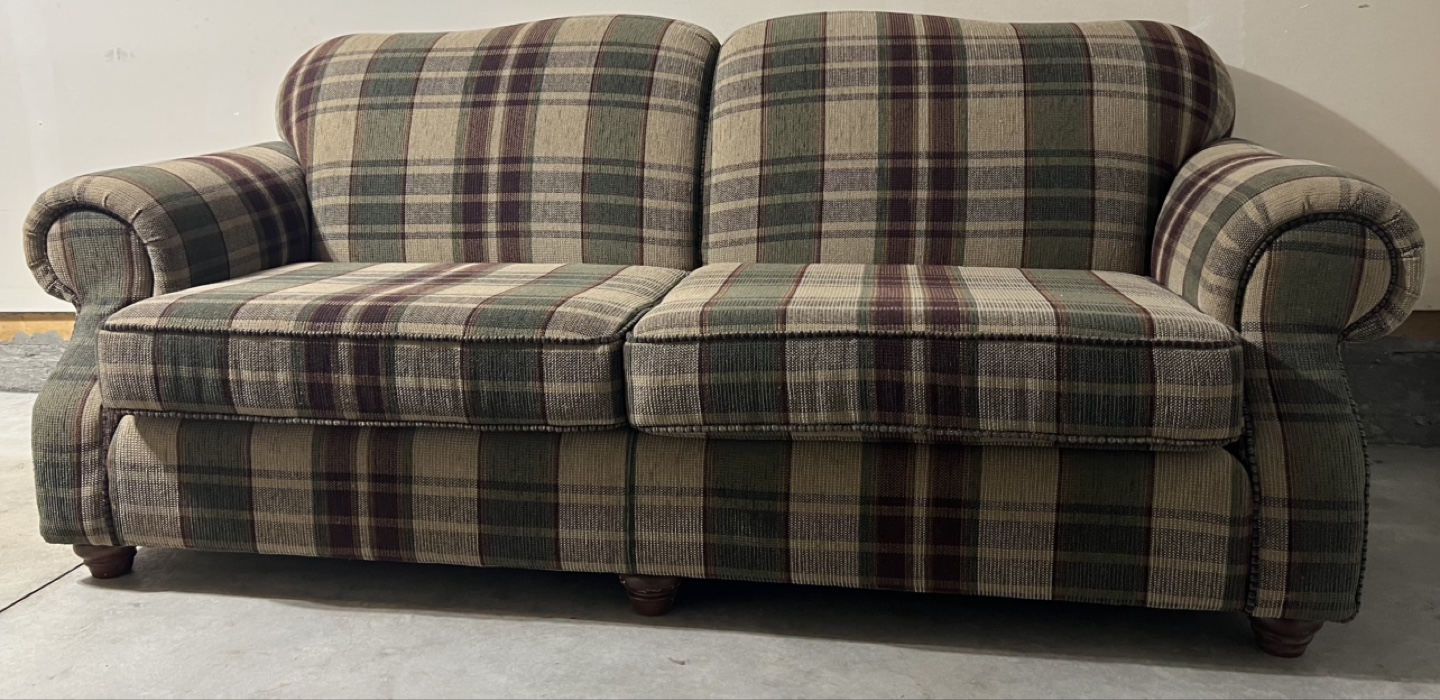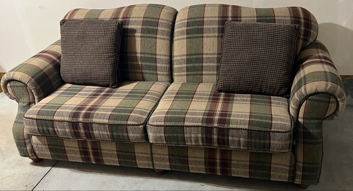 Comfortable loveseat, in great condition from pet free smoke free house Two-seater. Wooden legs. Neutral colours. I can deliver for an agreed fee