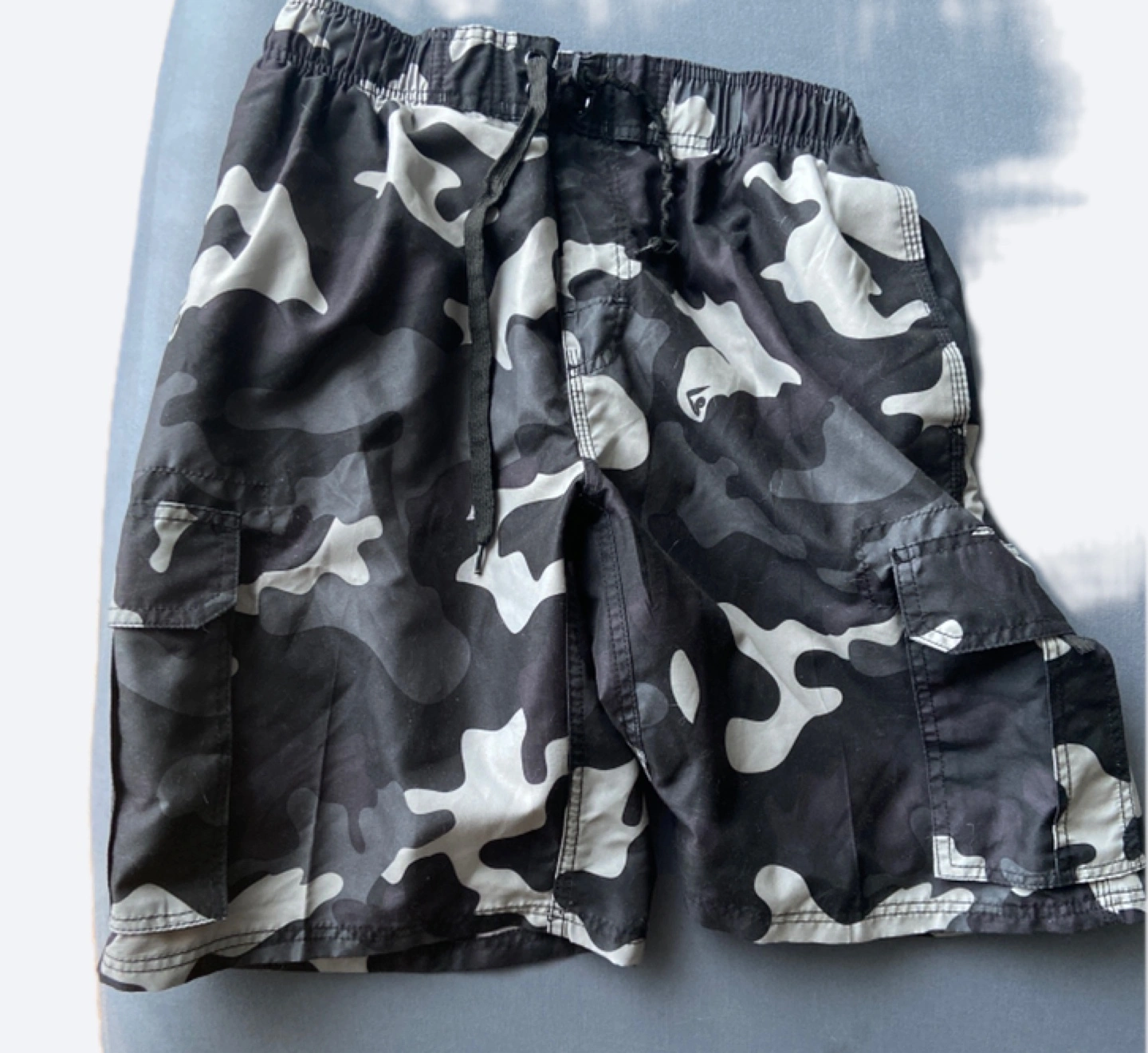 Men's swim trunks. Size medium. Camo print. 100% polyester. Features pockets. Brand new never worn bought for son and he does not like them.