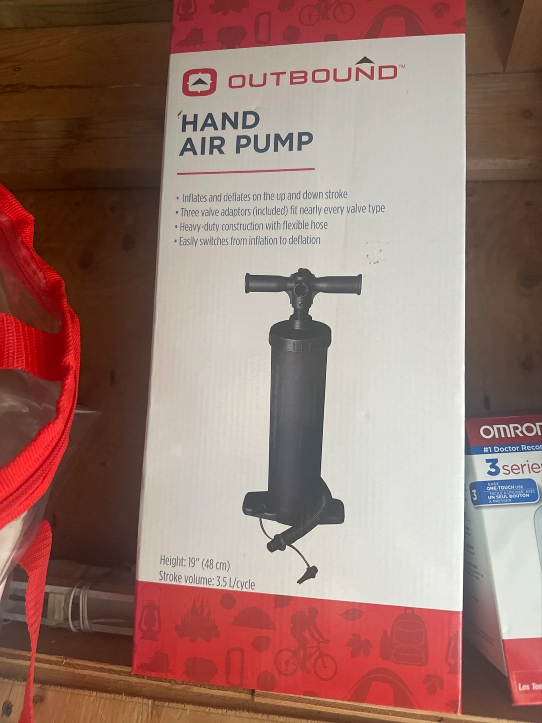 Inflates and deflates on up and down strokes. Three valve adaptors included. Heavy-duty construction with flexible hose. Easily switches between inflation and deflation. 19" tall. 3.5 L/cycle stroke volume.