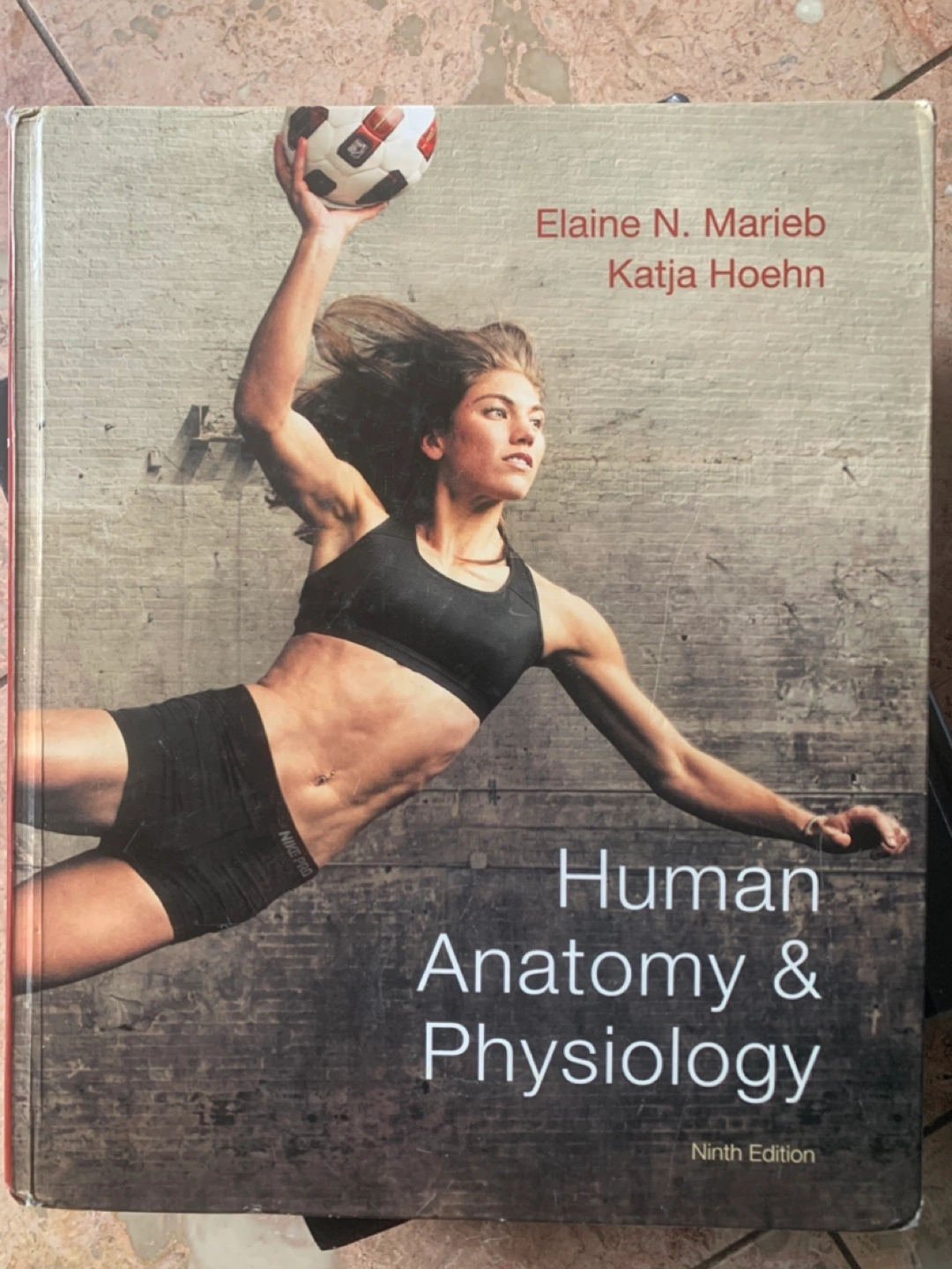 Used textbook. Ninth edition. Authors: Elaine N. Marieb and Katja Hoehn. Shows some wear.