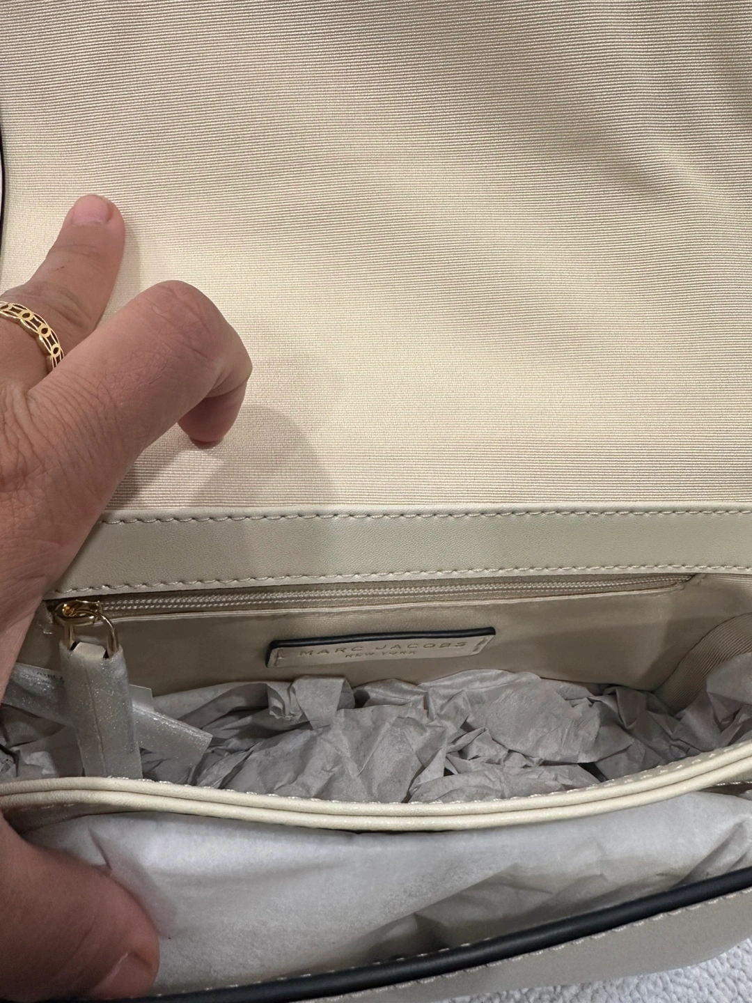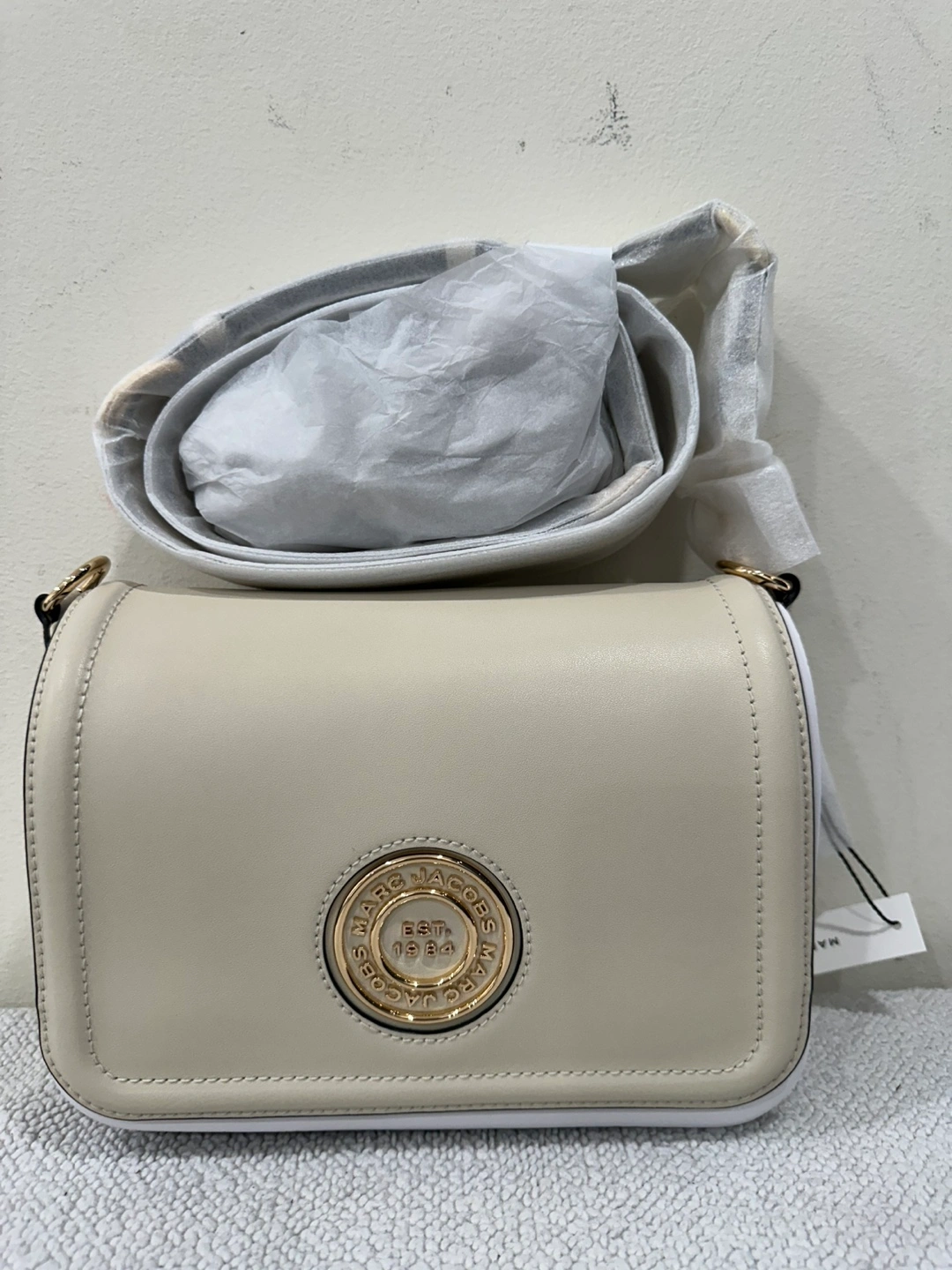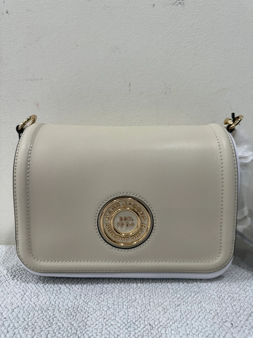 Marc Jacobs leather crossbody bag. Features a gold circular logo on the front. Adjustable strap. Brand New Excellent condition.