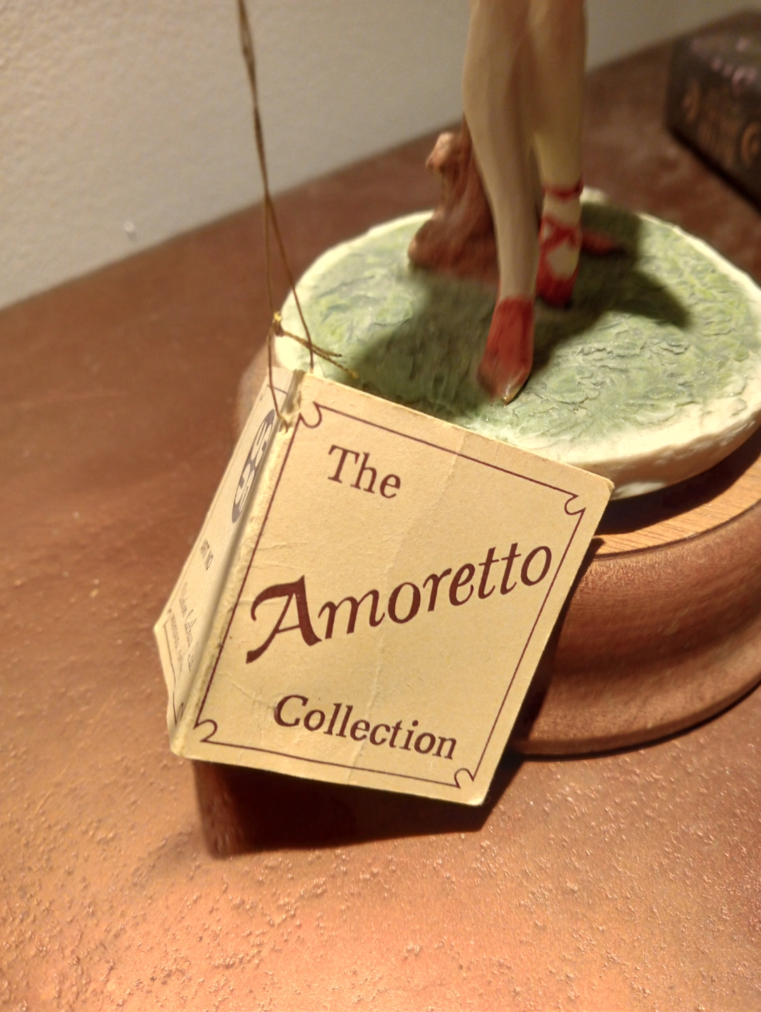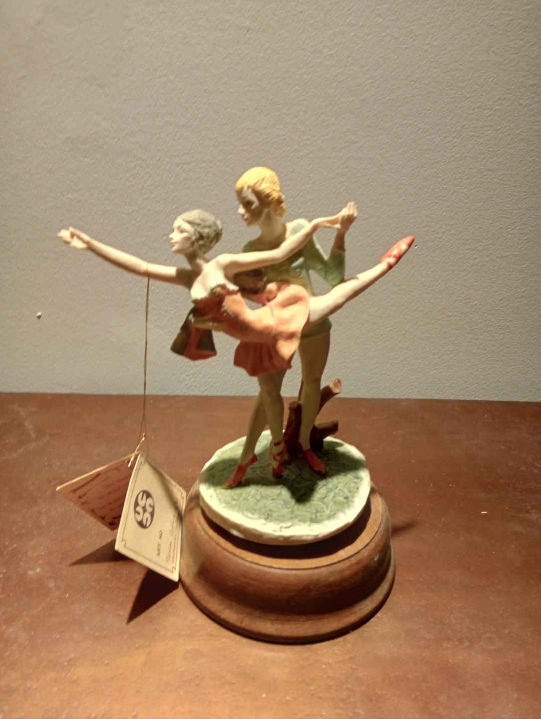 Collectible figurine, dancing couple, porcelain, wooden base. Part of the Amoretto Collection. Perfectly working.